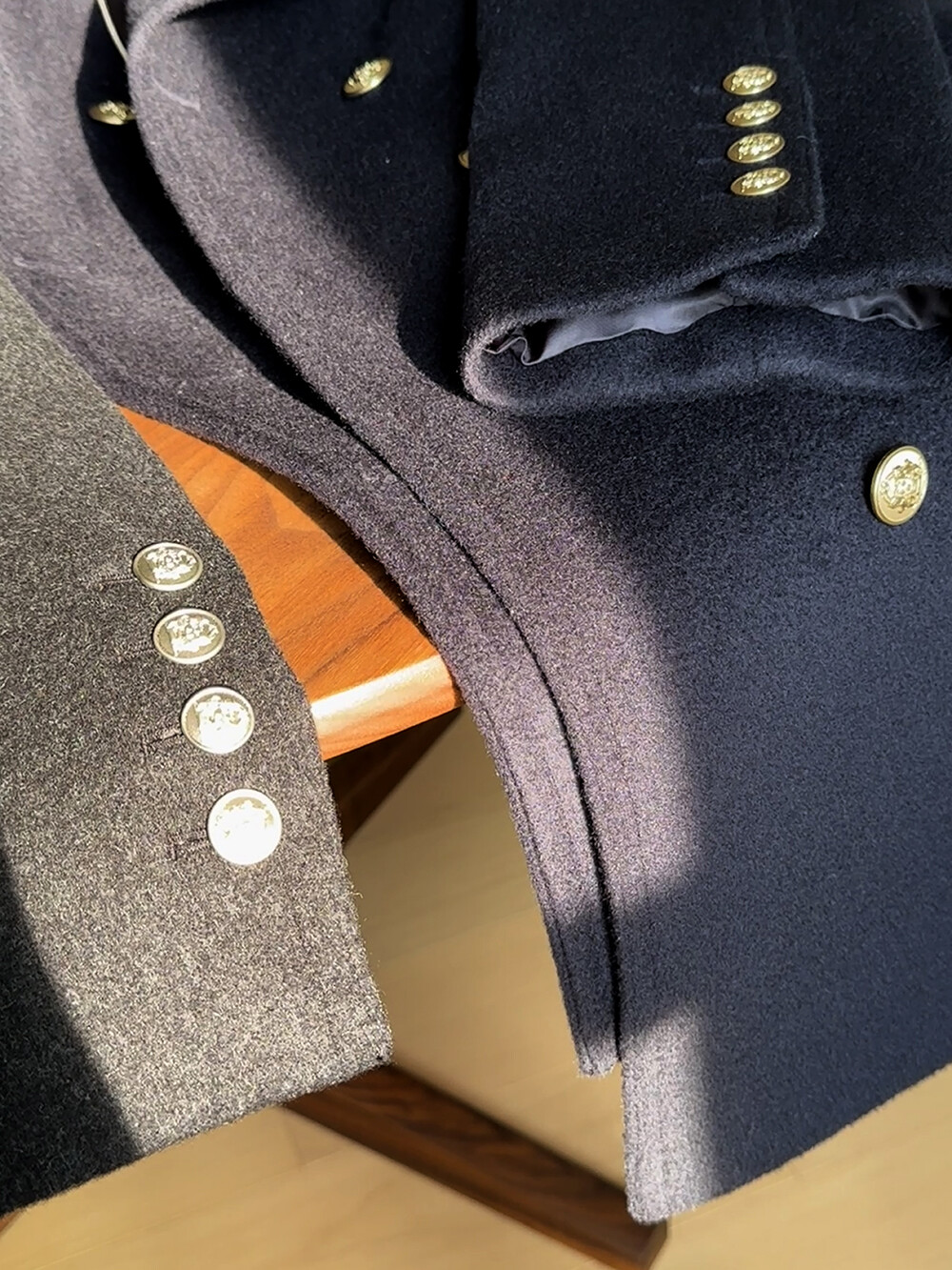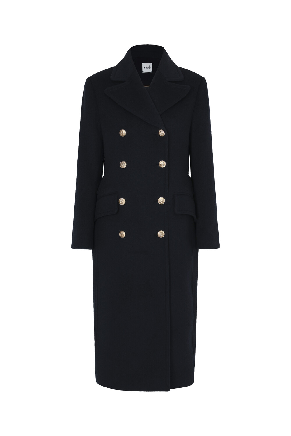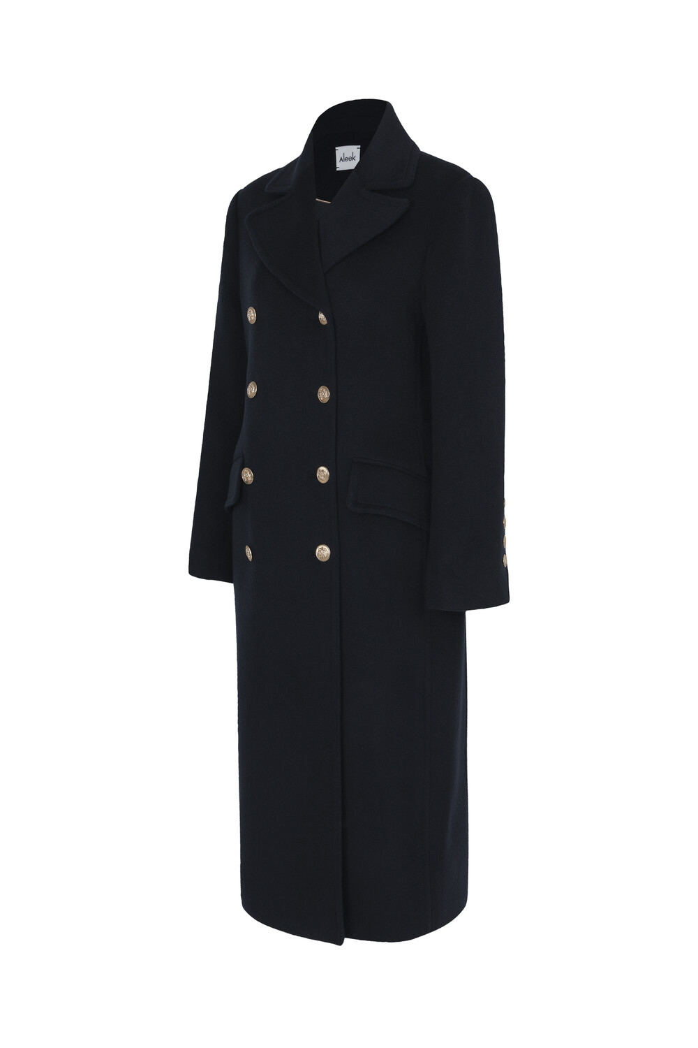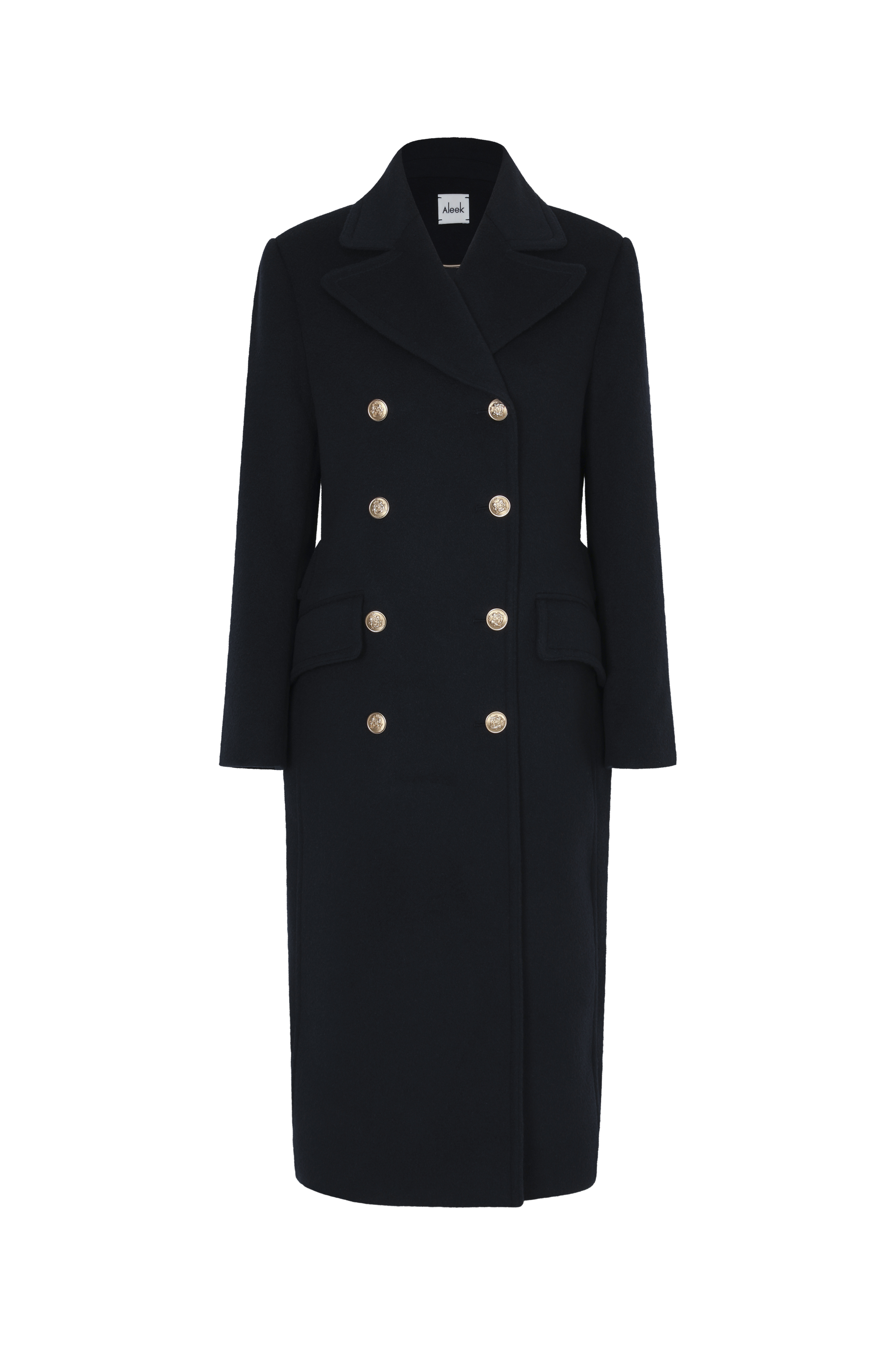 Aleek Cashmere100 Double_Breasted Gentle Pea Coat_Navy Black (LONG) Delivery