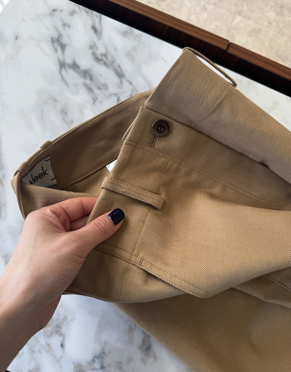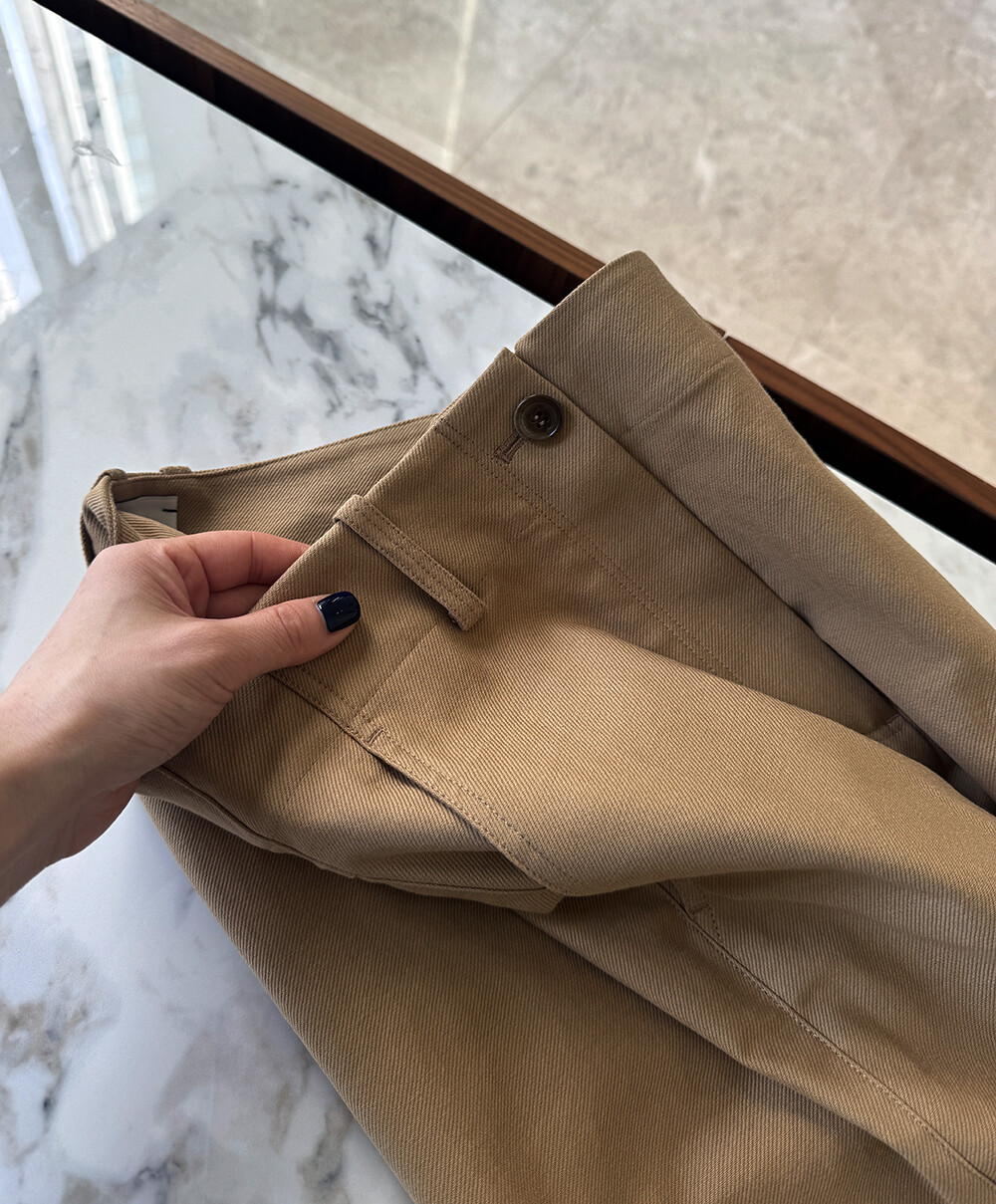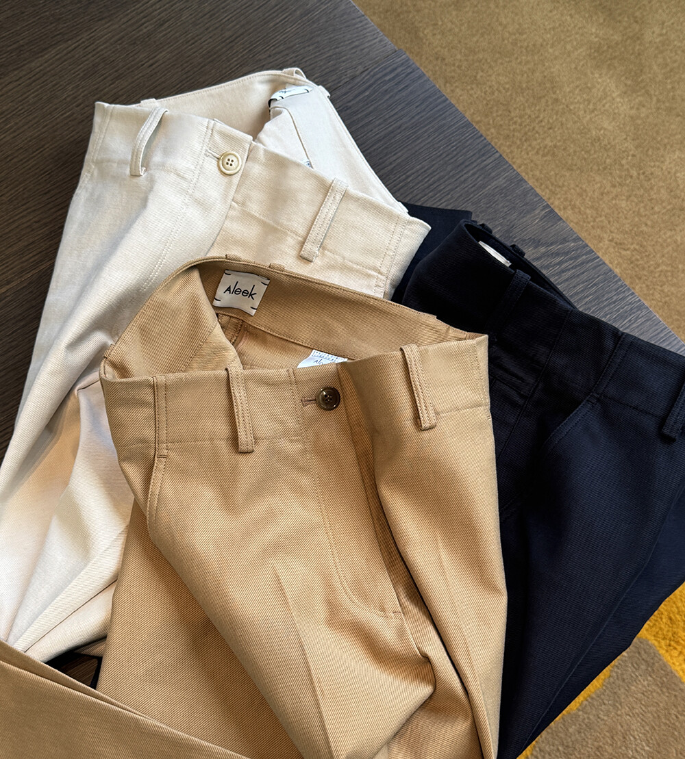 오버사이즈 코트와 겹치면 미니멀하면서 우아한 도시적 무드가 살아나고 슬립온, 로퍼, 스니커즈와 결합하면 세련된 데일리룩, 앵클 부츠와 함께하면 가을·겨울의 묵직하면서 따뜻하게 스타일링된 페미닌한 감성이 살아납니다. 허리선과 실루엣을 살짝 조정해 크롭 기장의 재킷과 연출하시면 모던한 세트업 연출도 가능하며 컬러와 액세서리 선택에 따라 나이와 계절을 초월한 다양한 표정이 가능해, 계절이 바뀌어도 옷장에서 중심을 잡아줄수 있는 팬츠 입니다. 허리 라인과 힙 라인의 각도를 미세하게 조정해 여성의 실루엣을 매끈하게 정리하면서도 전체적으로 허리/증힙은 슬림하면서 힙/허벅지 라인은 낙낙하게 연출하실 수 있는 실루엣으로 네추럴한 데일리 스트레이트 핏 치노팬츠로 미니멀클래식 스타일과 편안한 착용감을 선사합니다.