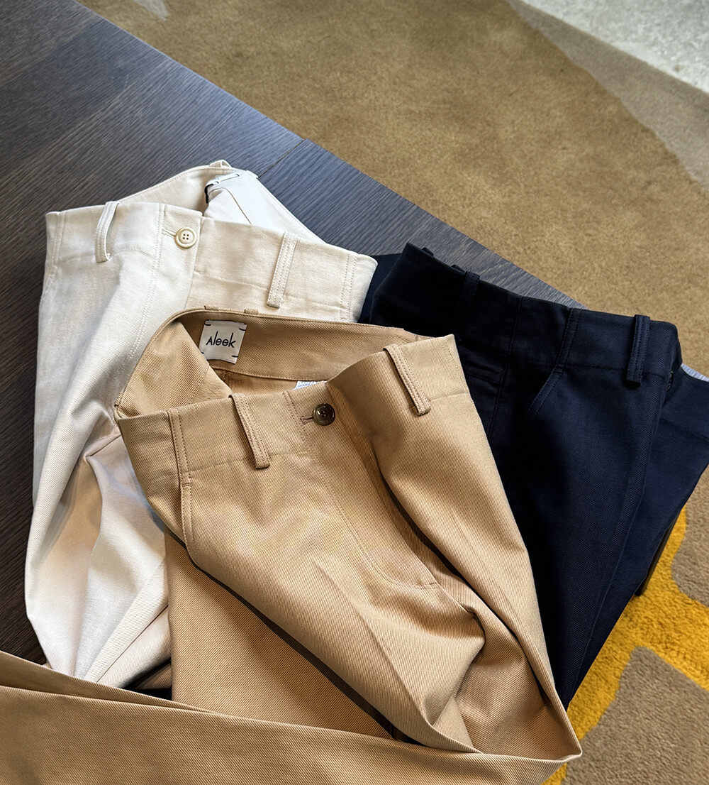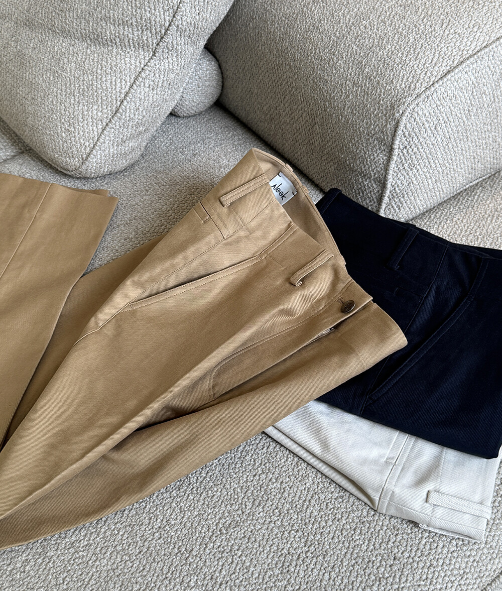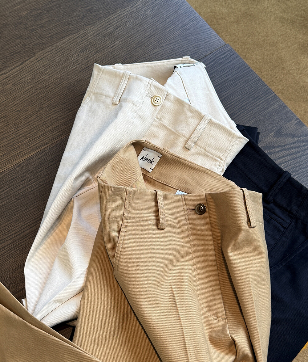 이번 시즌 아리크 스튜디오는, 깊이 있는 질감과 정제된 실루엣으로 완성된 스트레이트-레그 치노팬츠를 소개합니다.