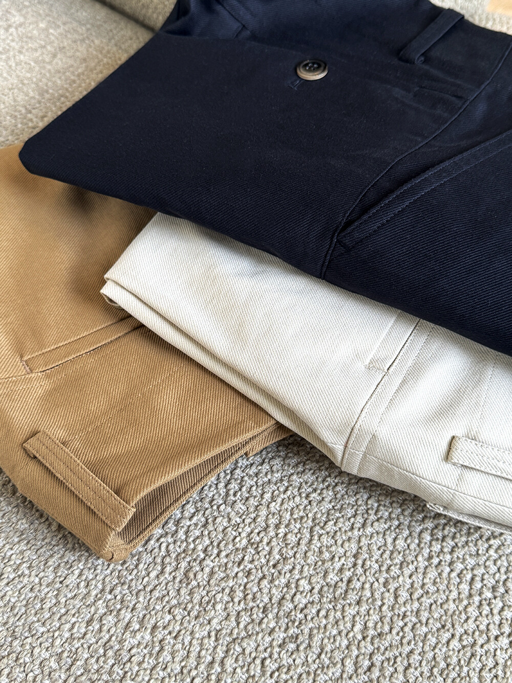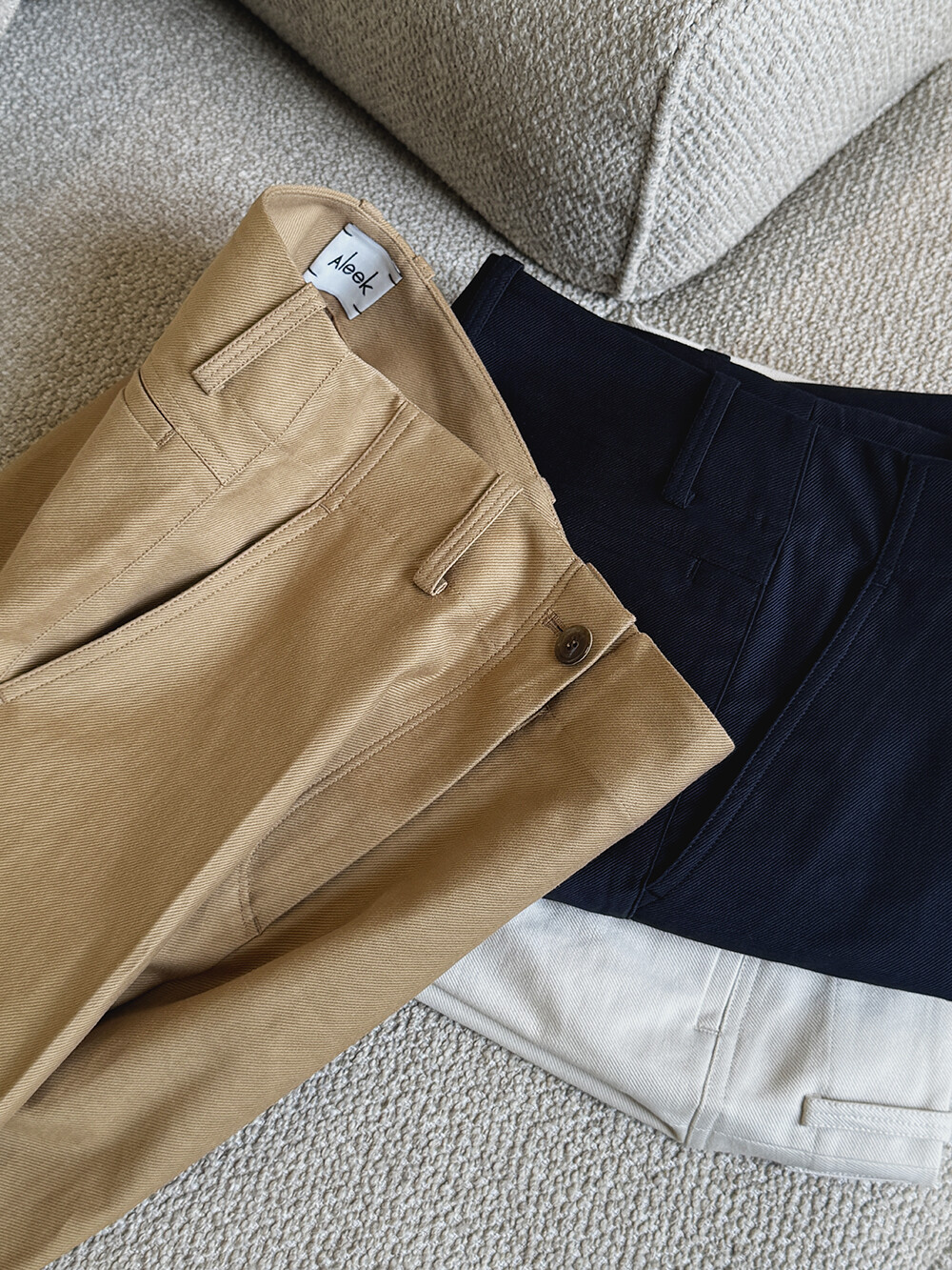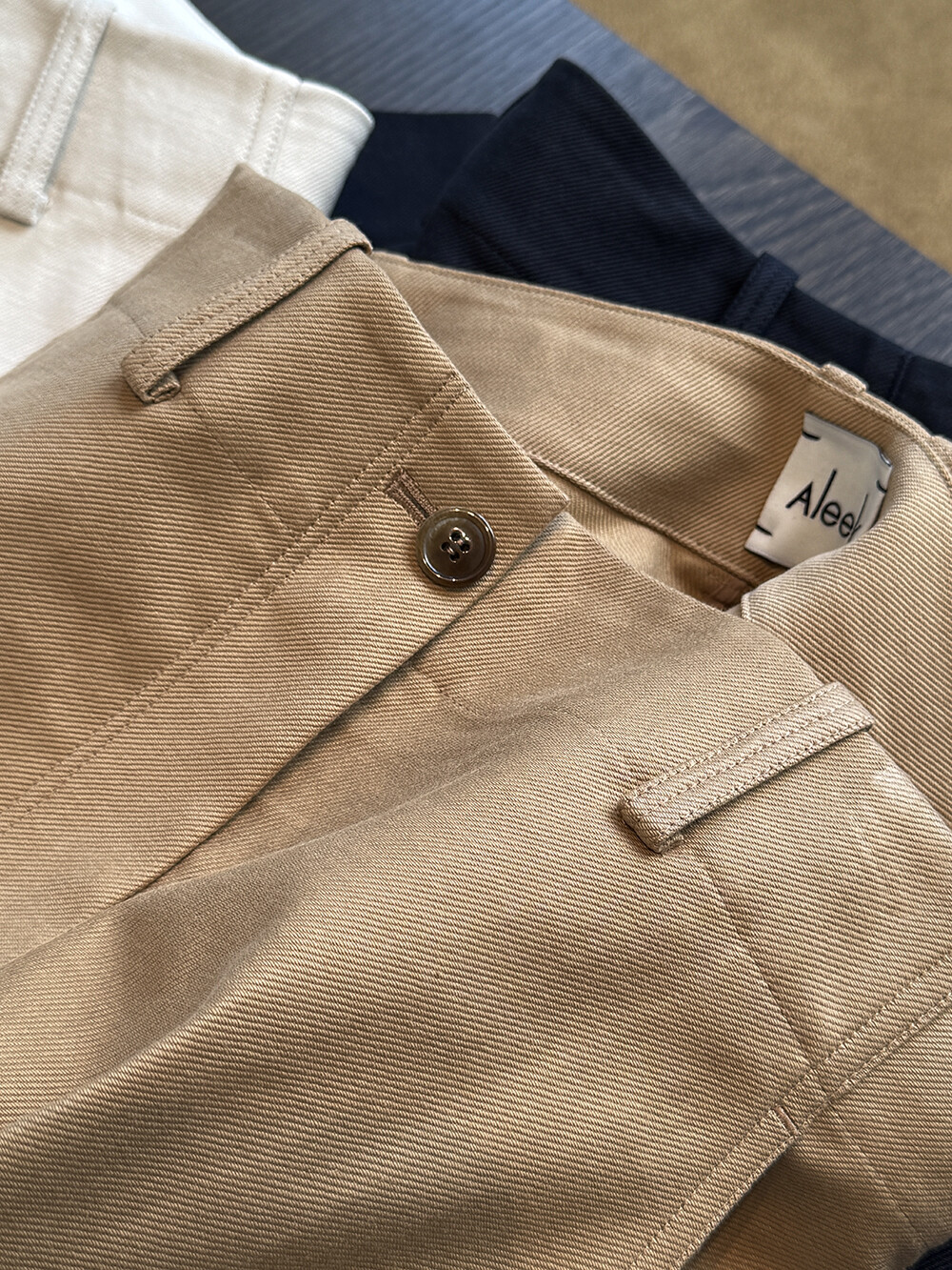 이번 시즌 아리크 스튜디오는, 깊이 있는 질감과 정제된 실루엣으로 완성된 스트레이트-레그 치노팬츠를 소개합니다.