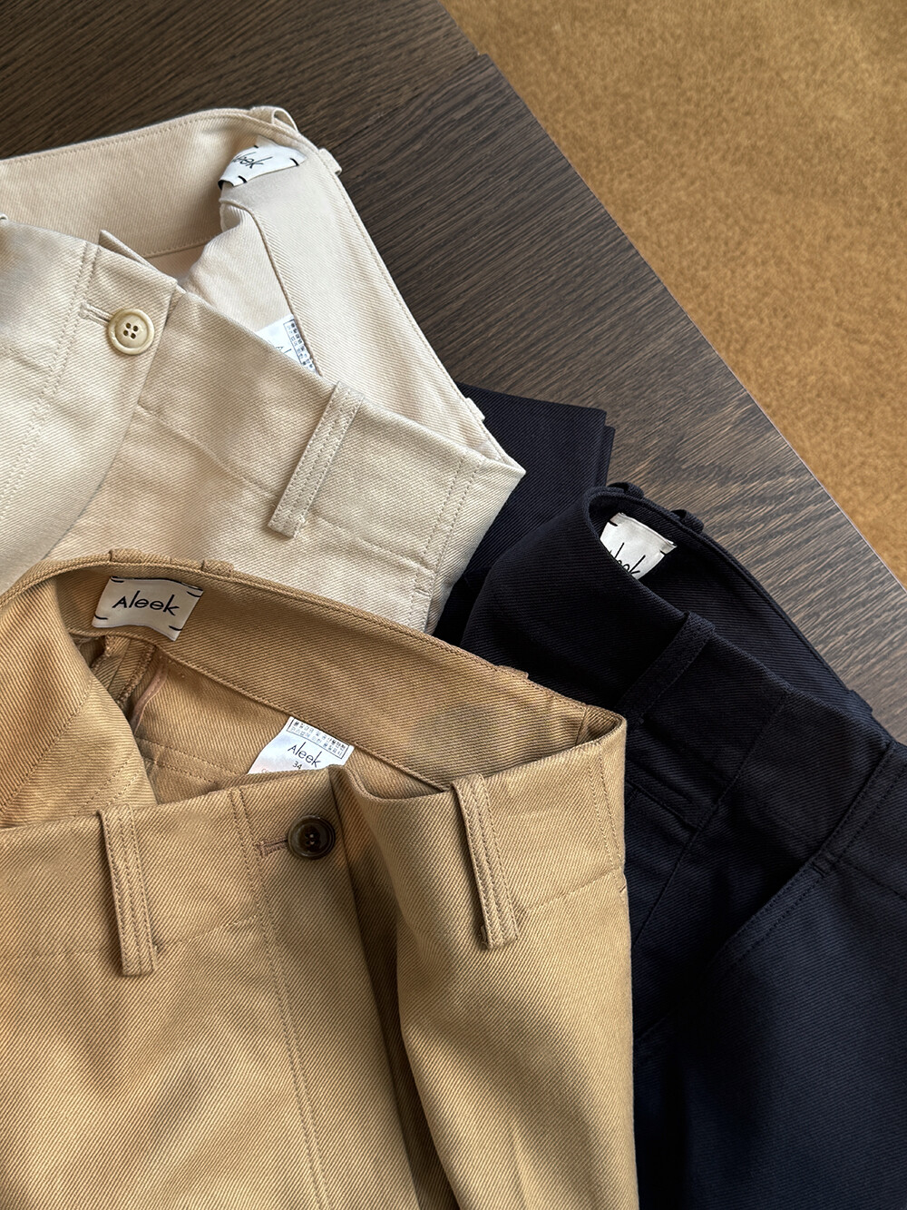 300g대 중량의 일본 SHIBAYA 코튼 트윌 원단으로 제작된 이 Aleek FW Stretch Cotton Straight-leg Gentle Chino PT 는,