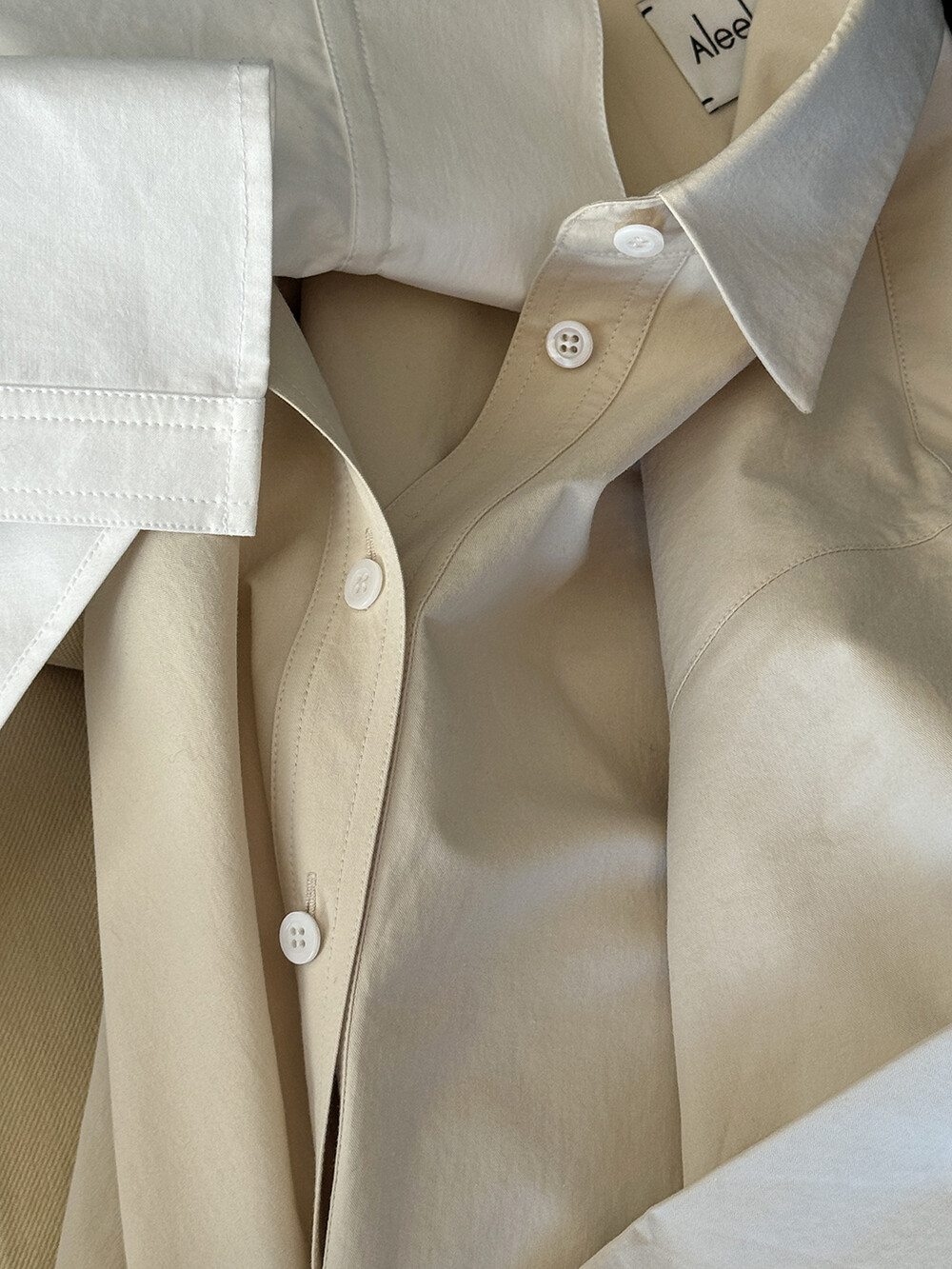 에센셜한 베이직 캐주얼 셔츠이면서 젠틀한 무드를 동시에 느끼실 수 있도록 카라가 크지 않으면서 각이 자연스럽게 오래 유지 될 수 있게 세밀하게 라인을 정리 하였으며 셔츠의 커프스가 니트 혹은 아우터와 어우러졌을 때 셔츠의 엣지가 살수 있도록 크기와 너비, 팔의 주름들을 신경 쓰면서 완성된 셔츠 입니다.