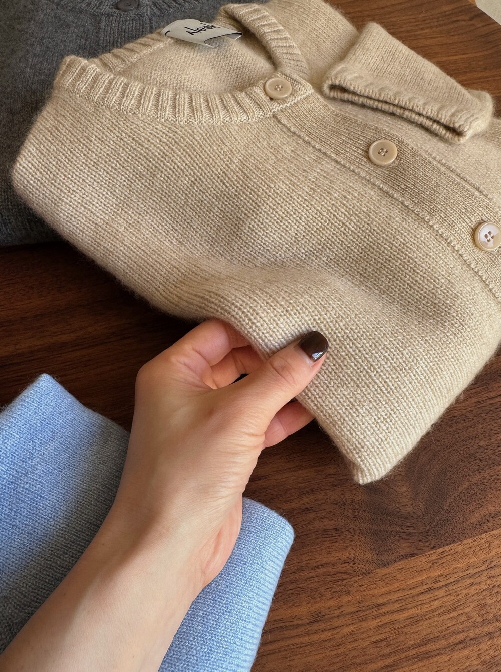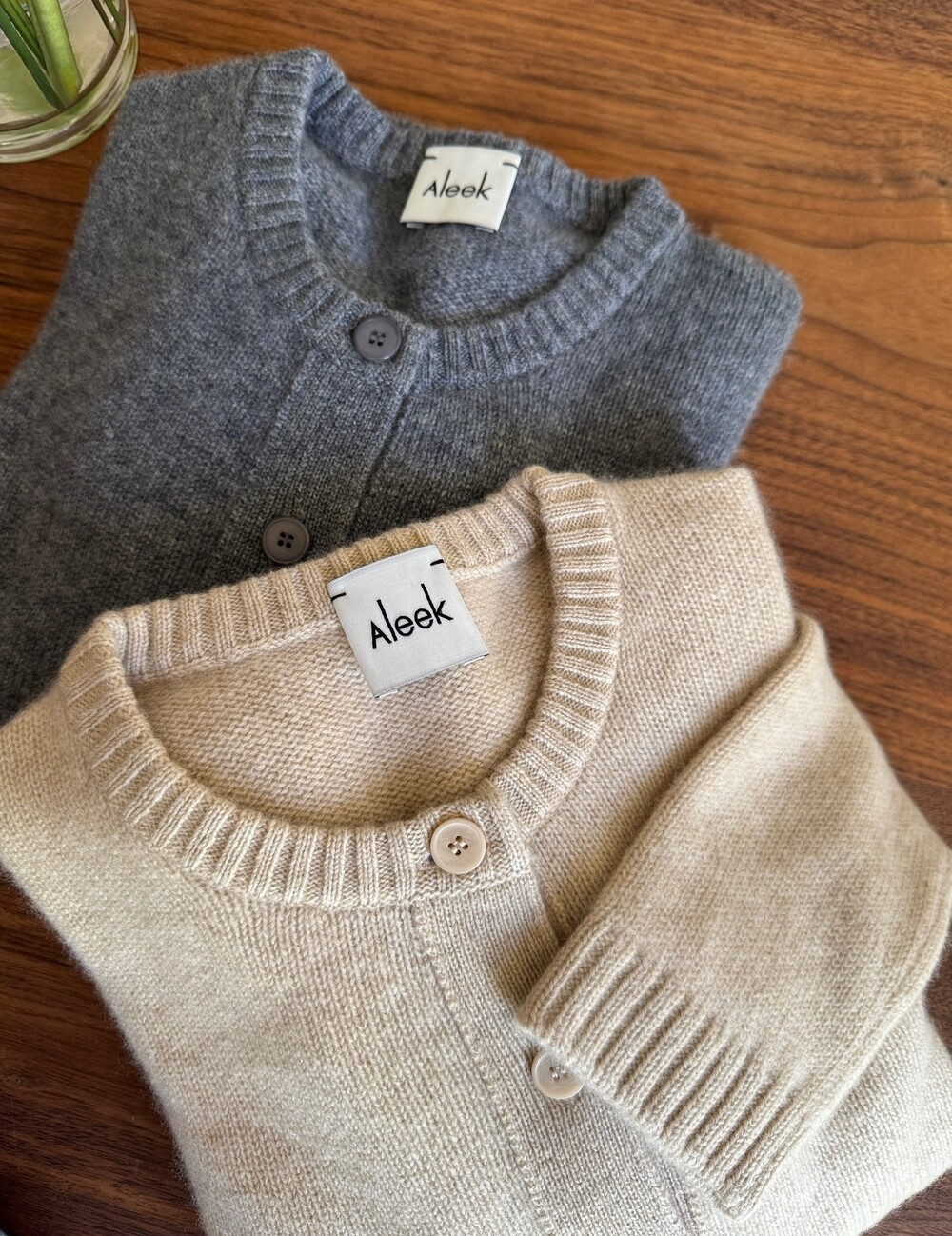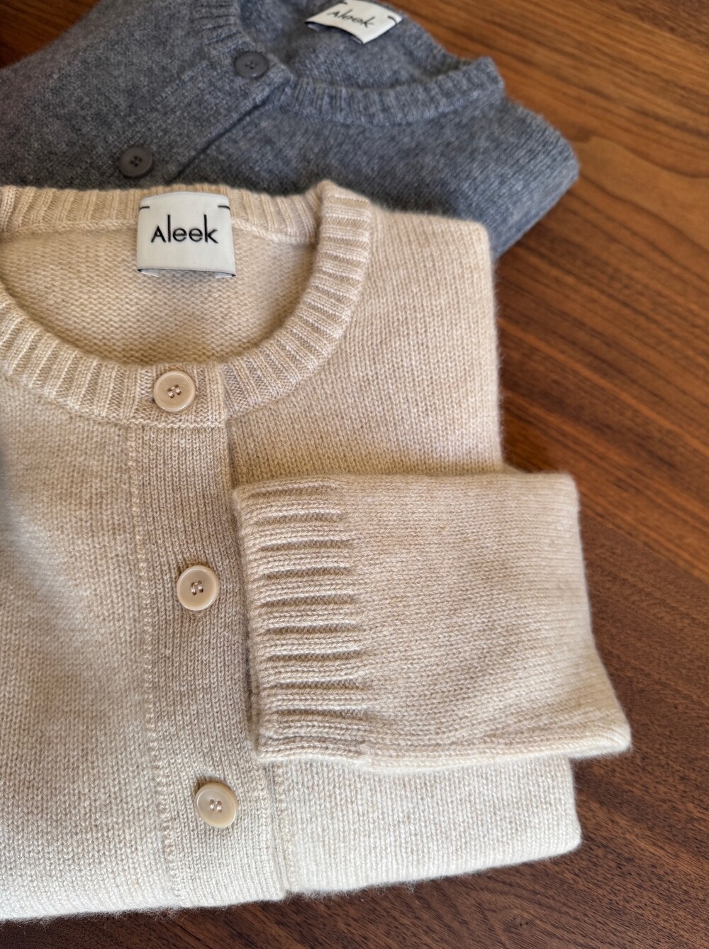 Aleek Mongolian Cashmere 100 Classic Roundneck Cardigan