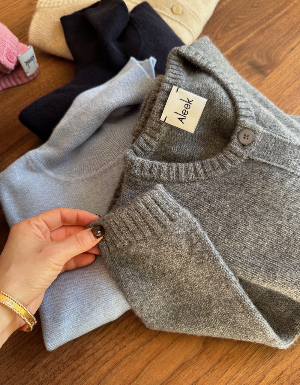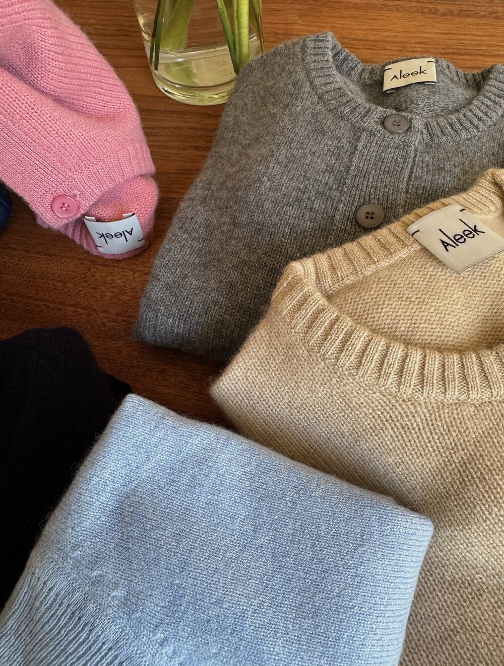 Aleek Mongolian Cashmere 100 Classic Roundneck Cardigan Delivery
