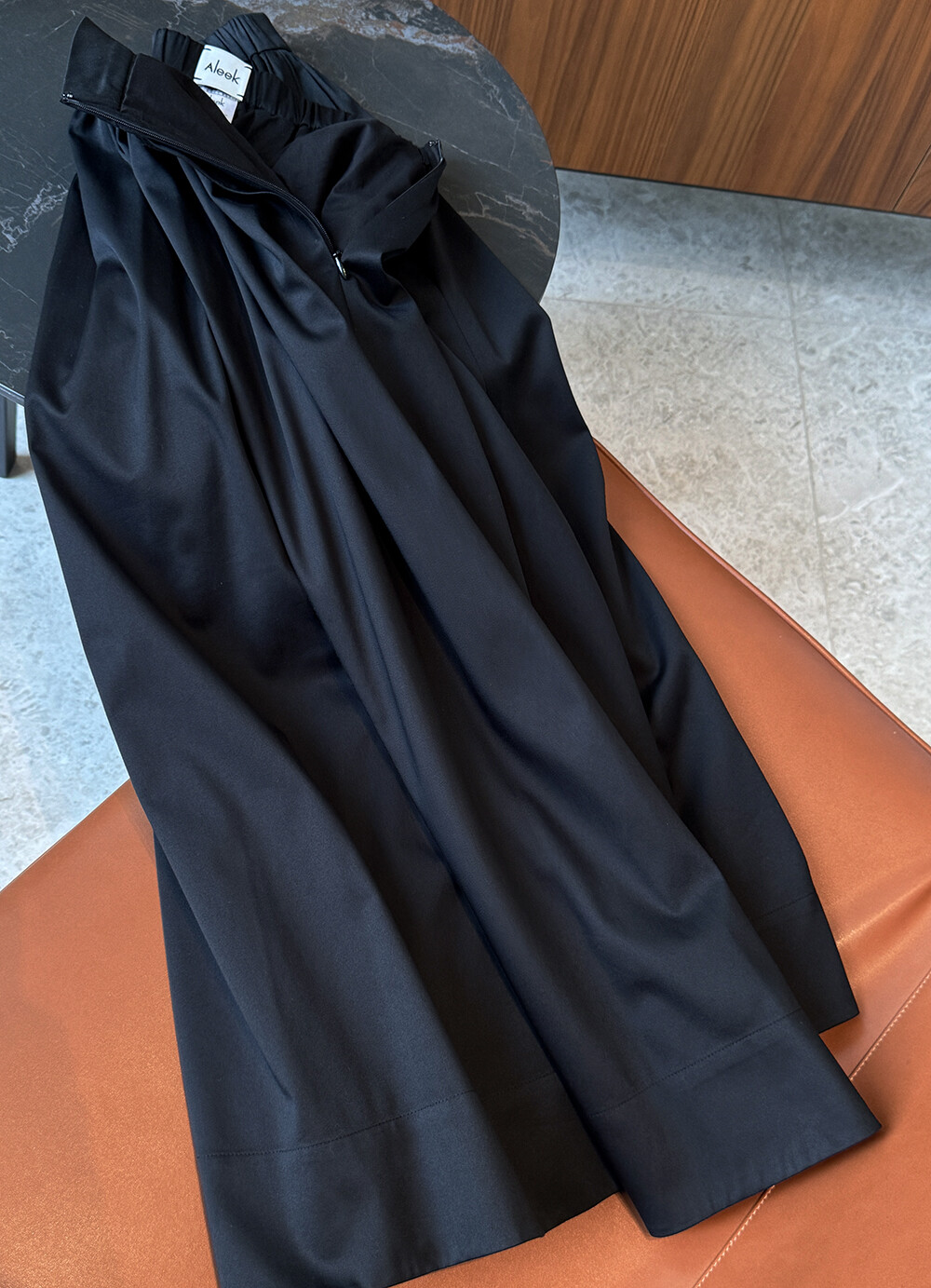 Aleek Satin Cotton Banding Full Skirt_Vanta Black은 1:1 오더 제작 상품으로 주문변경, 취소, 환불이 불가하며, 하단의 박스안의 교환 및 반품 안내문은 꼭 읽어 주시고 구매 부탁 드립니다.