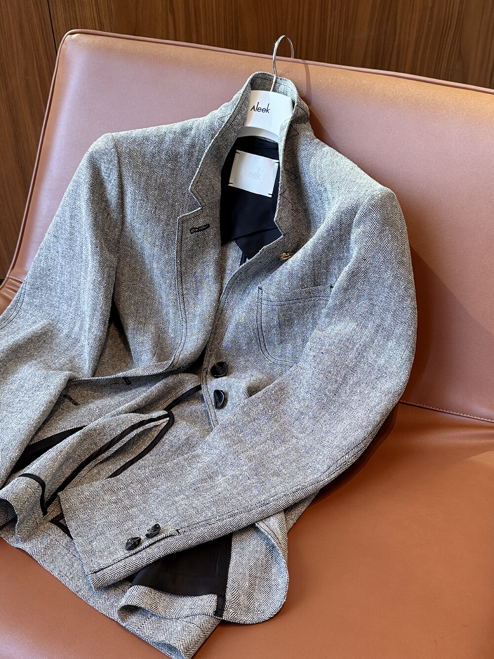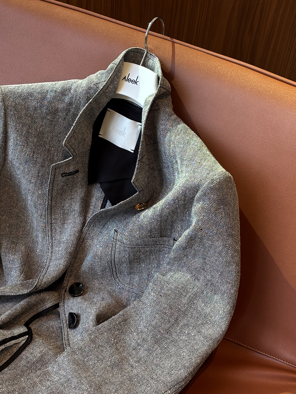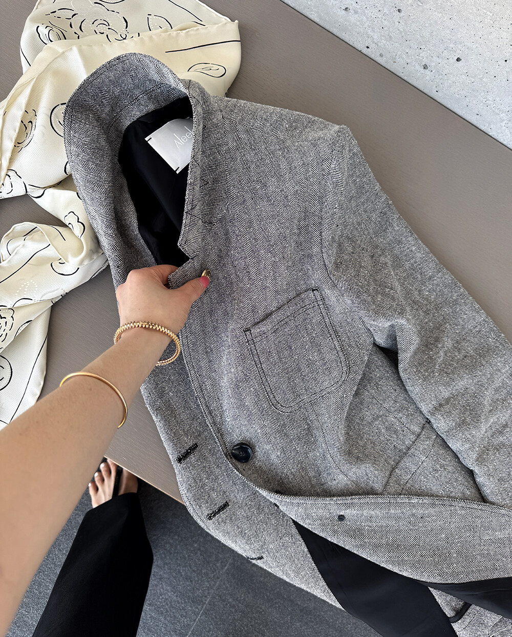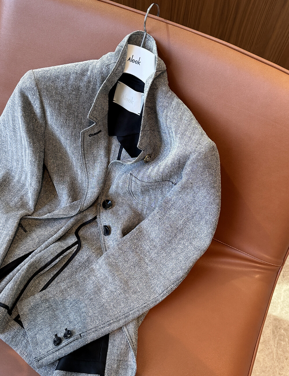 Aleek Silk Linen Belnded Herringbone Gentle SS JK의 네추럴함을 더한 모던테일러드 캐주얼함으로