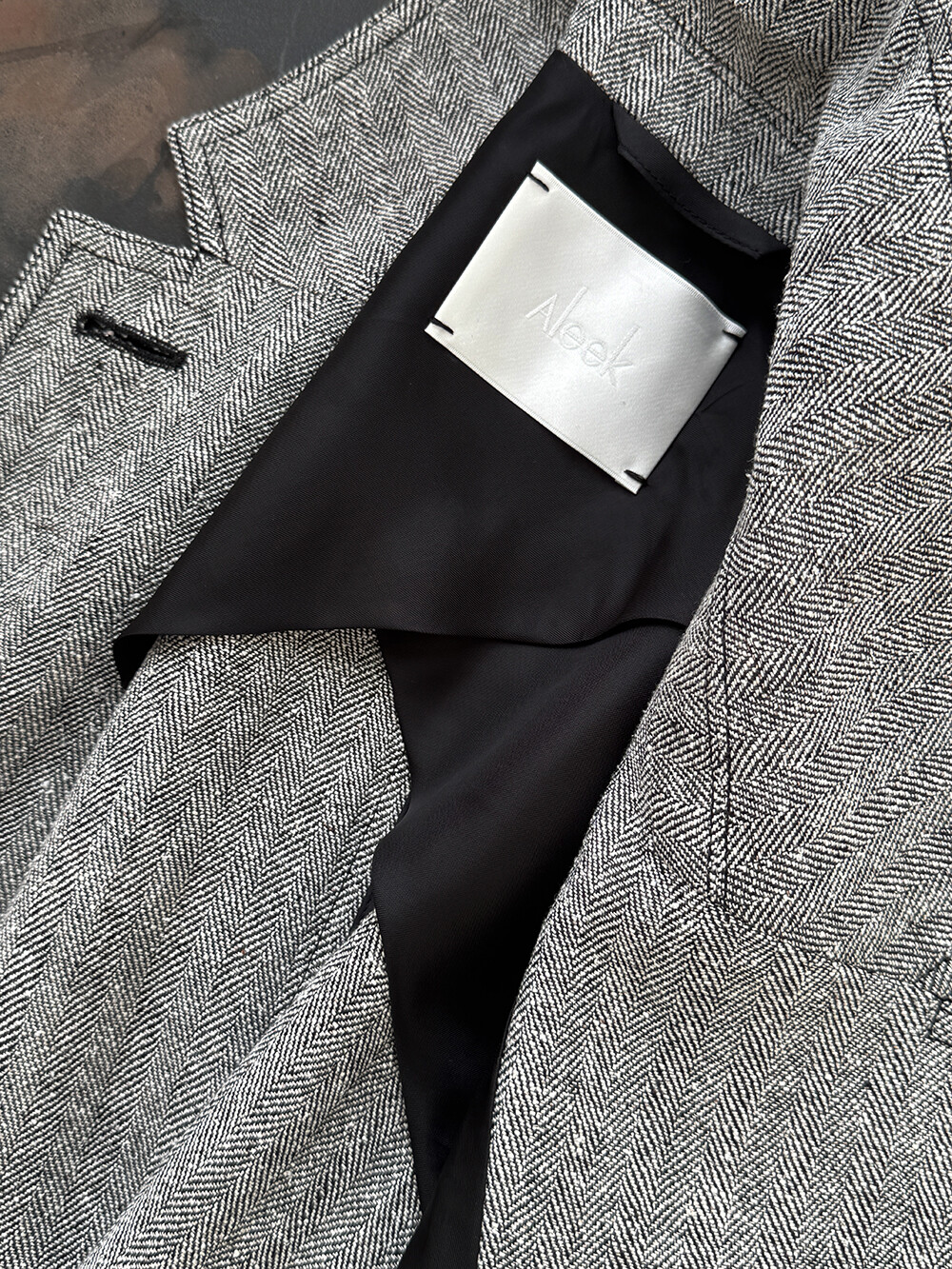 Aleek Silk Linen Belnded Herringbone Gentle SS JK_Black White Herringbone Delivery