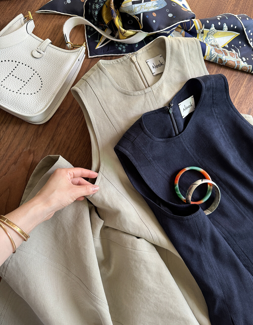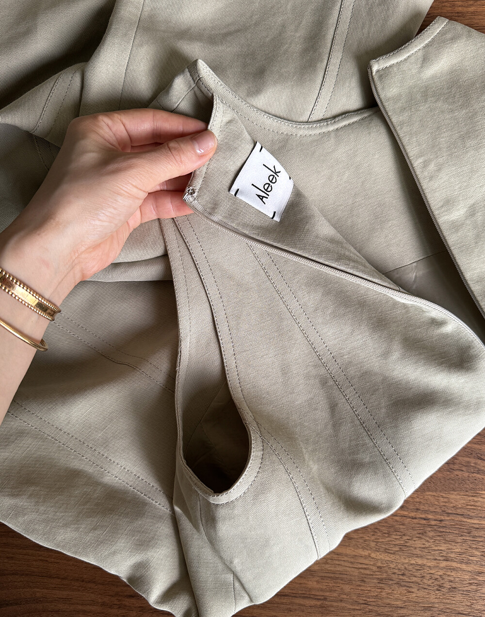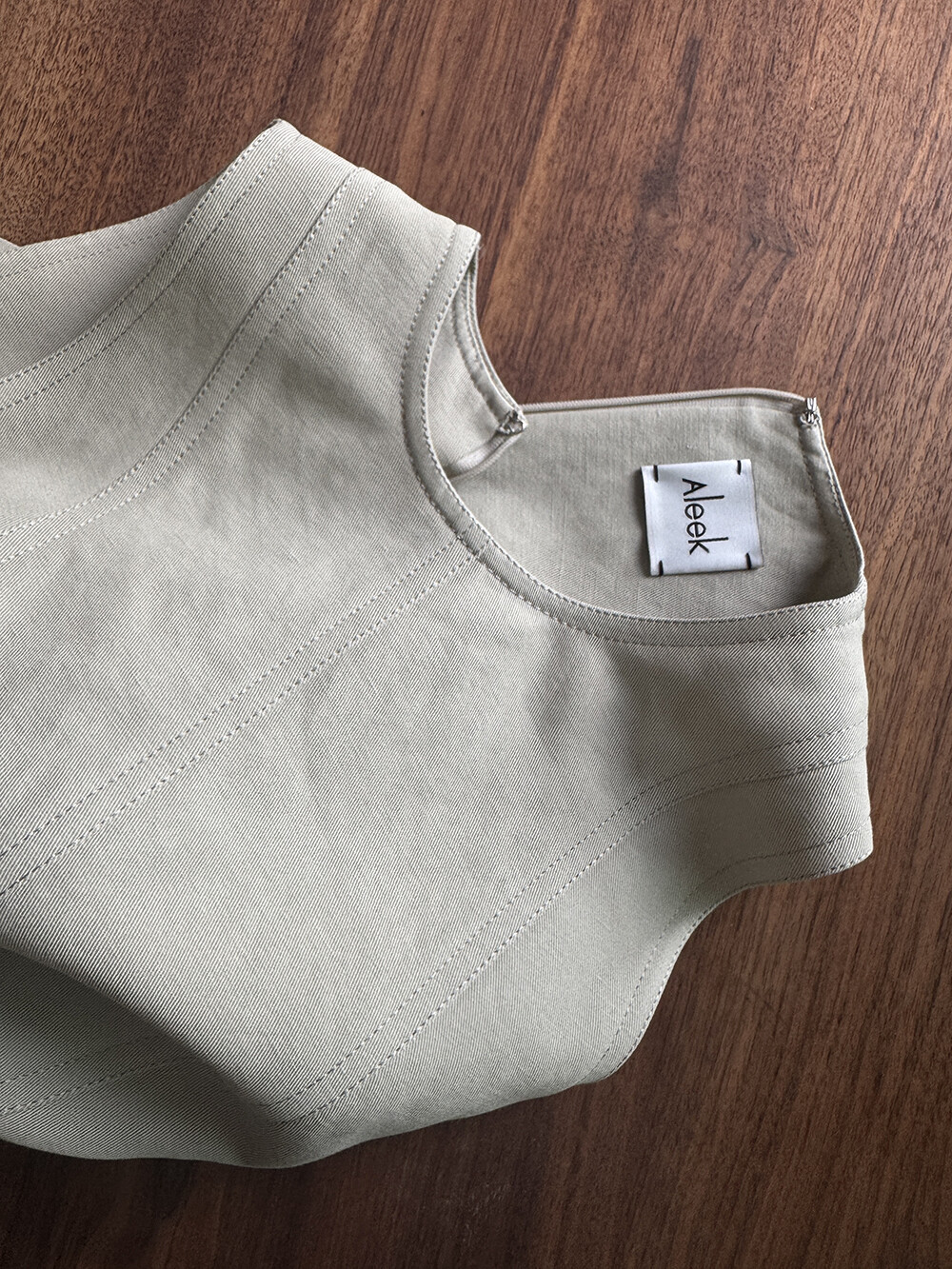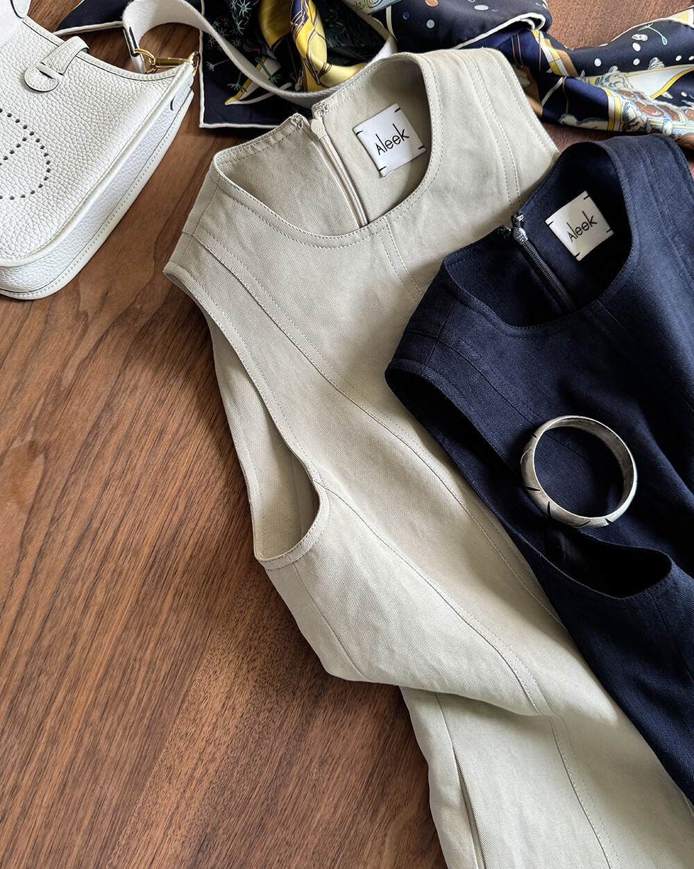 이번 원피스 첫번째 원단으로 셀렉된 코튼 / 린넨 전문회사로 명성을 떨치고 있는 Tipico 사의 New Arrive 한 25SS 원단은 트윌로 재직된 코튼사 린넨사의 치밀하게 짜여진 무게감이 적당히 느껴지는 원단으로 원단의 흐름이 가볍지 않고 무게감이 느껴지면서