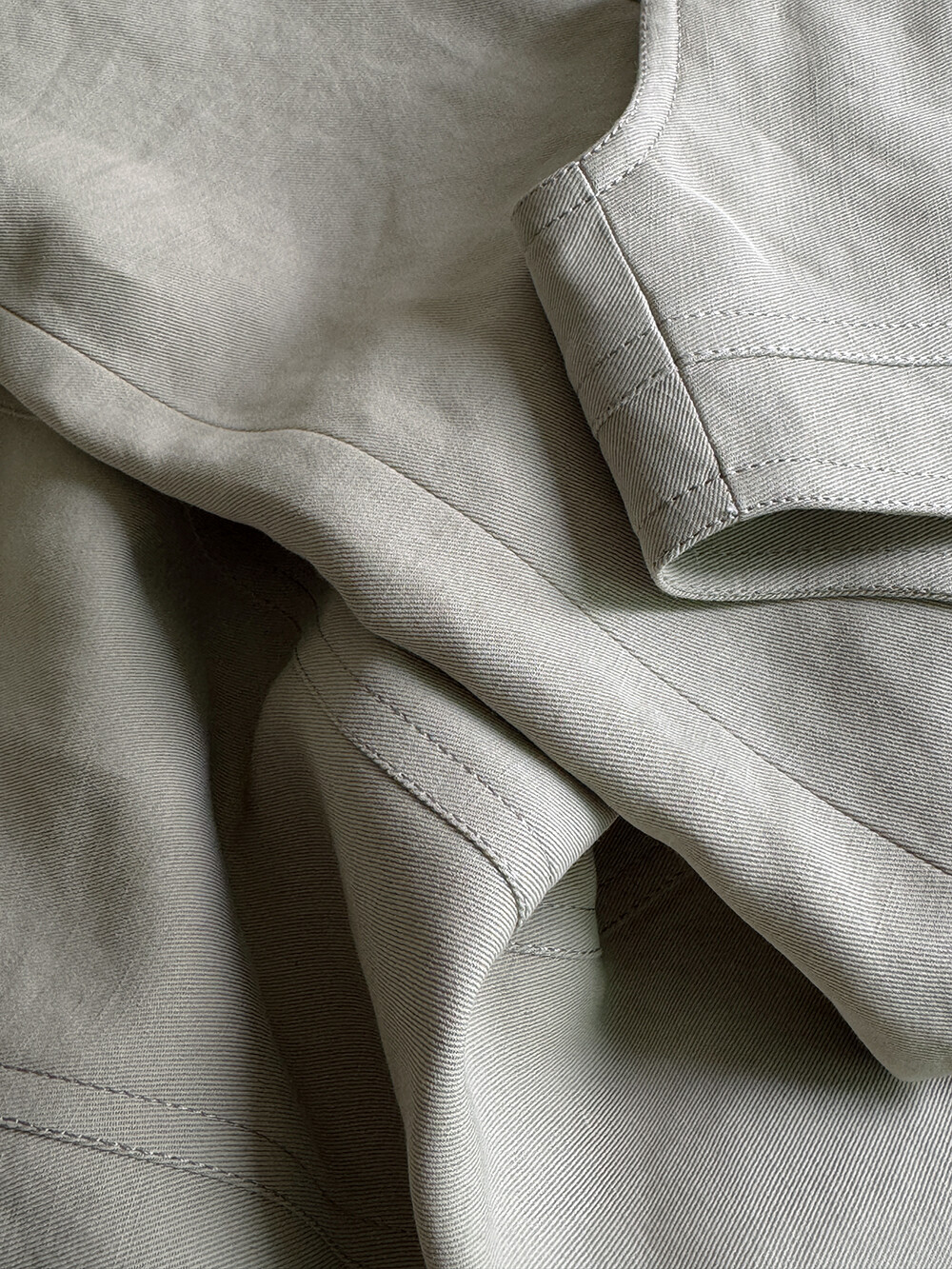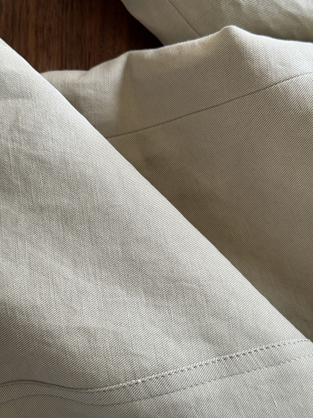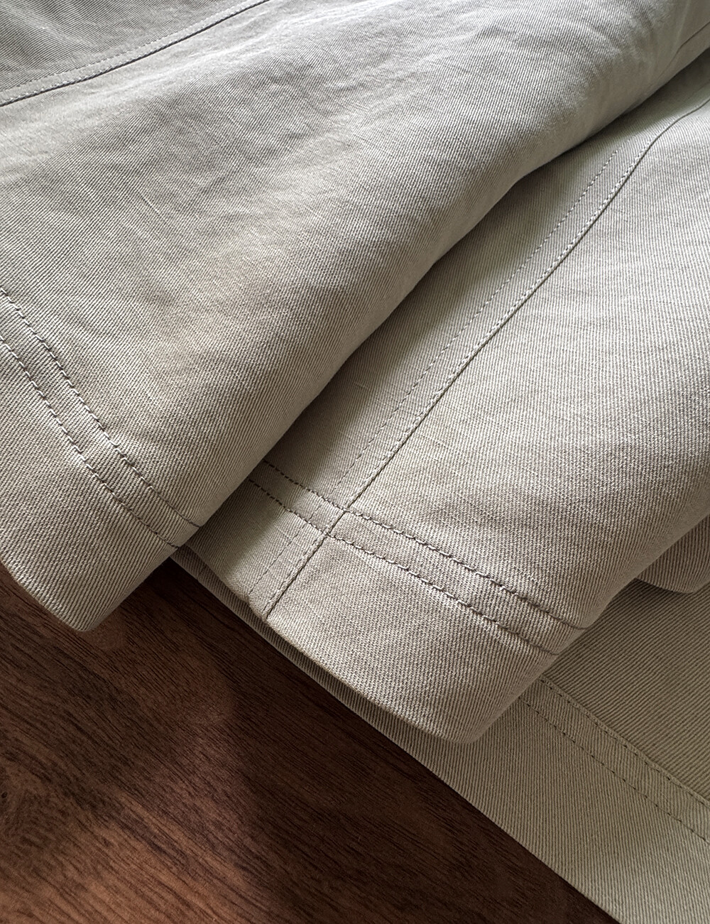 코튼/린넨의 텍스쳐가 살아있는 트윌 조직감의 볼륨감 있는 린넨 짜임까지 더해져 세련되고 은은함에 청량감까지 느껴지는 여름의