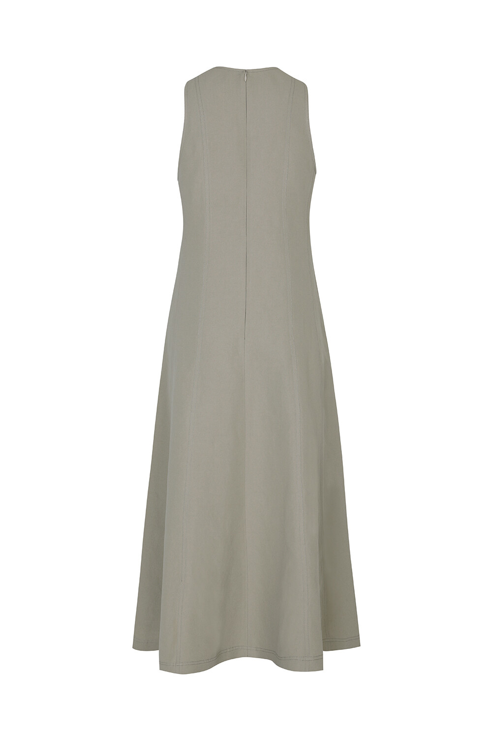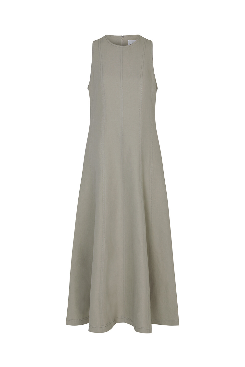 Aleek SS Cotton Linen Blend Flare Maxi Dress_Forest Shadow Khaki Delivery