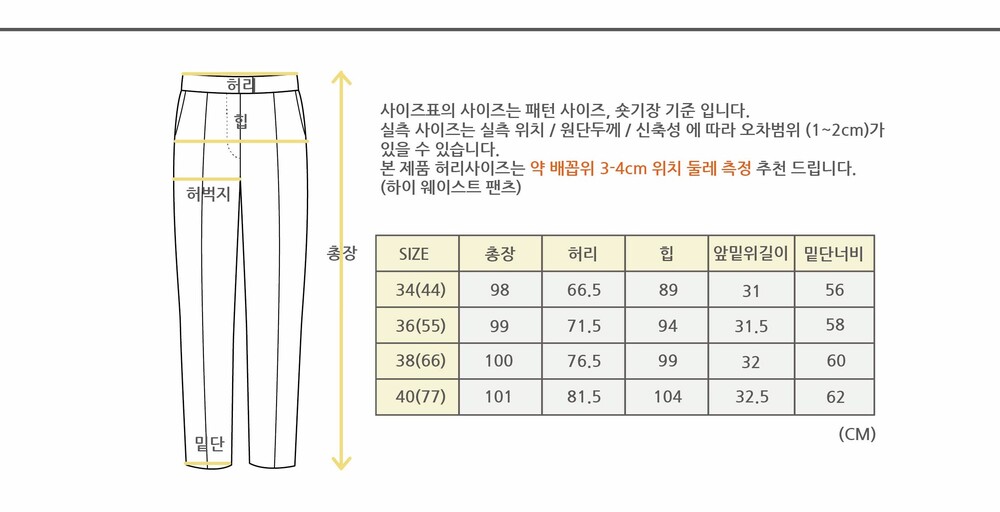사이즈: 34(44),36(55),38(66),40(77) 정 사이즈 입니다. (상세 사이즈 하단 참고)