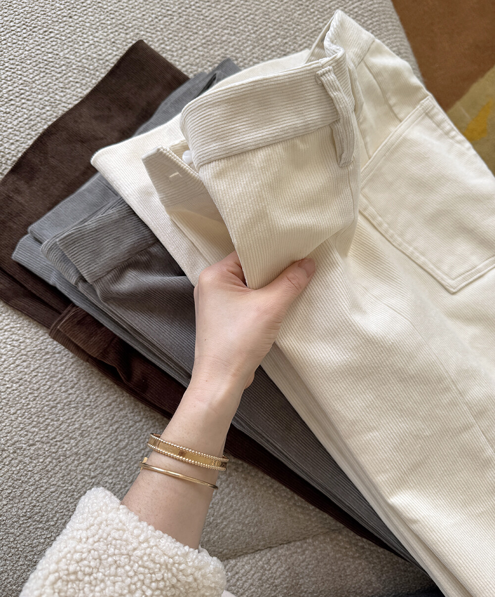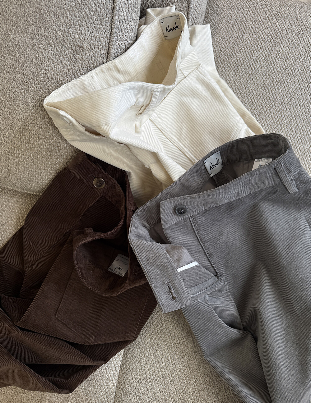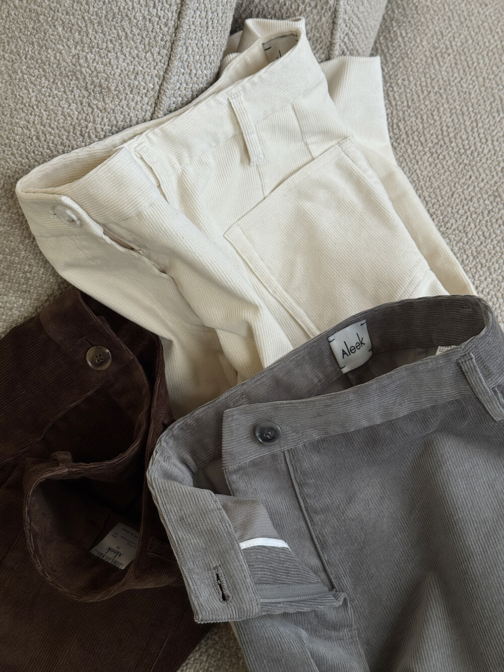 각 컬러들의 매력과 함께 이번 Aleek Stretch Cotton Corduroy Semi Wide PT 를 소개 합니다.