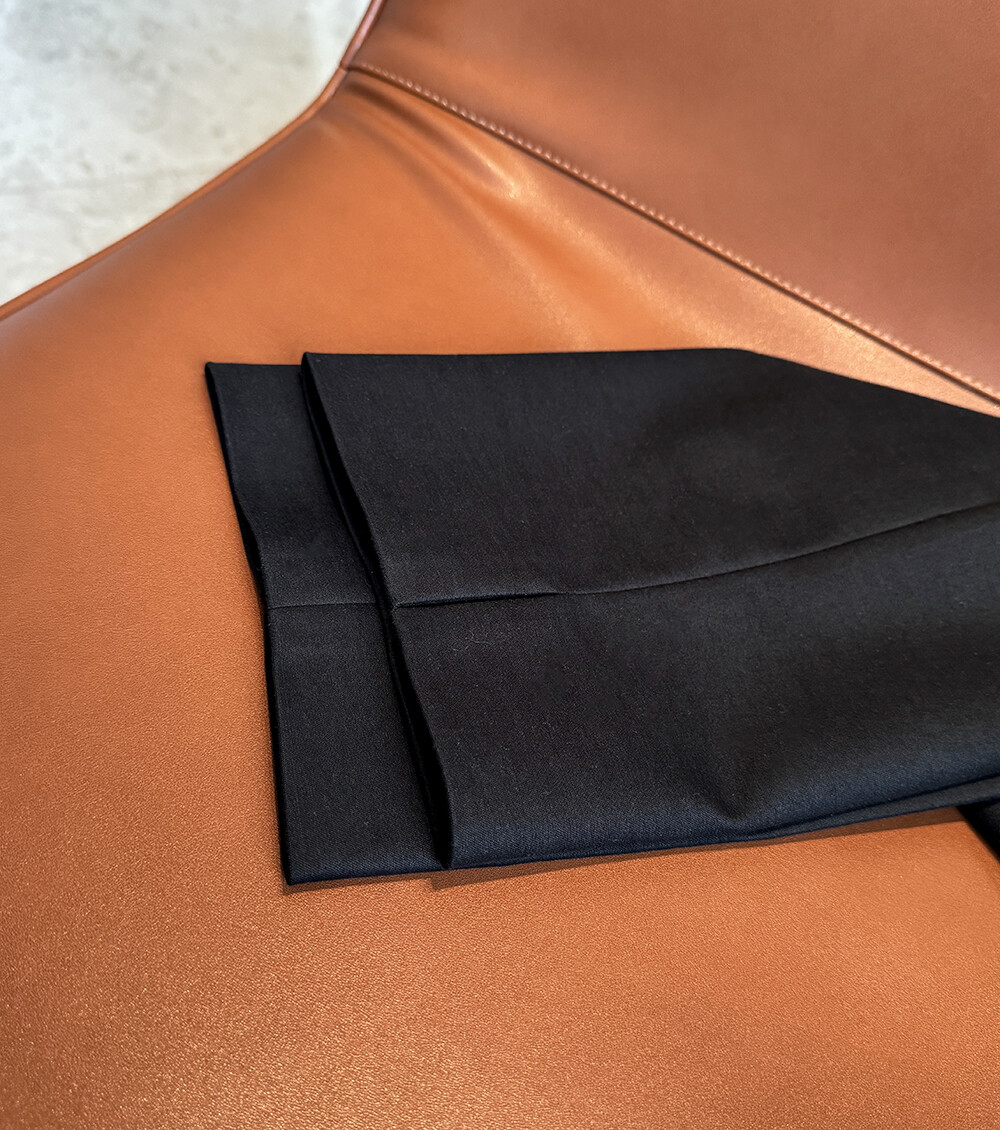코튼이 가지는 편안함과 더불어 무딘 원단결이 아닌 실키 하면서 입체감이 느껴지느 고급스런 실키 수피마 코튼 텍스처로 에센셜한 핏감을 테일러드 감성과 함께 느껴보실 수 있는 Aleek Stretch Cotton Slit Pointed Minimal PT_Espresso Black 입니다.