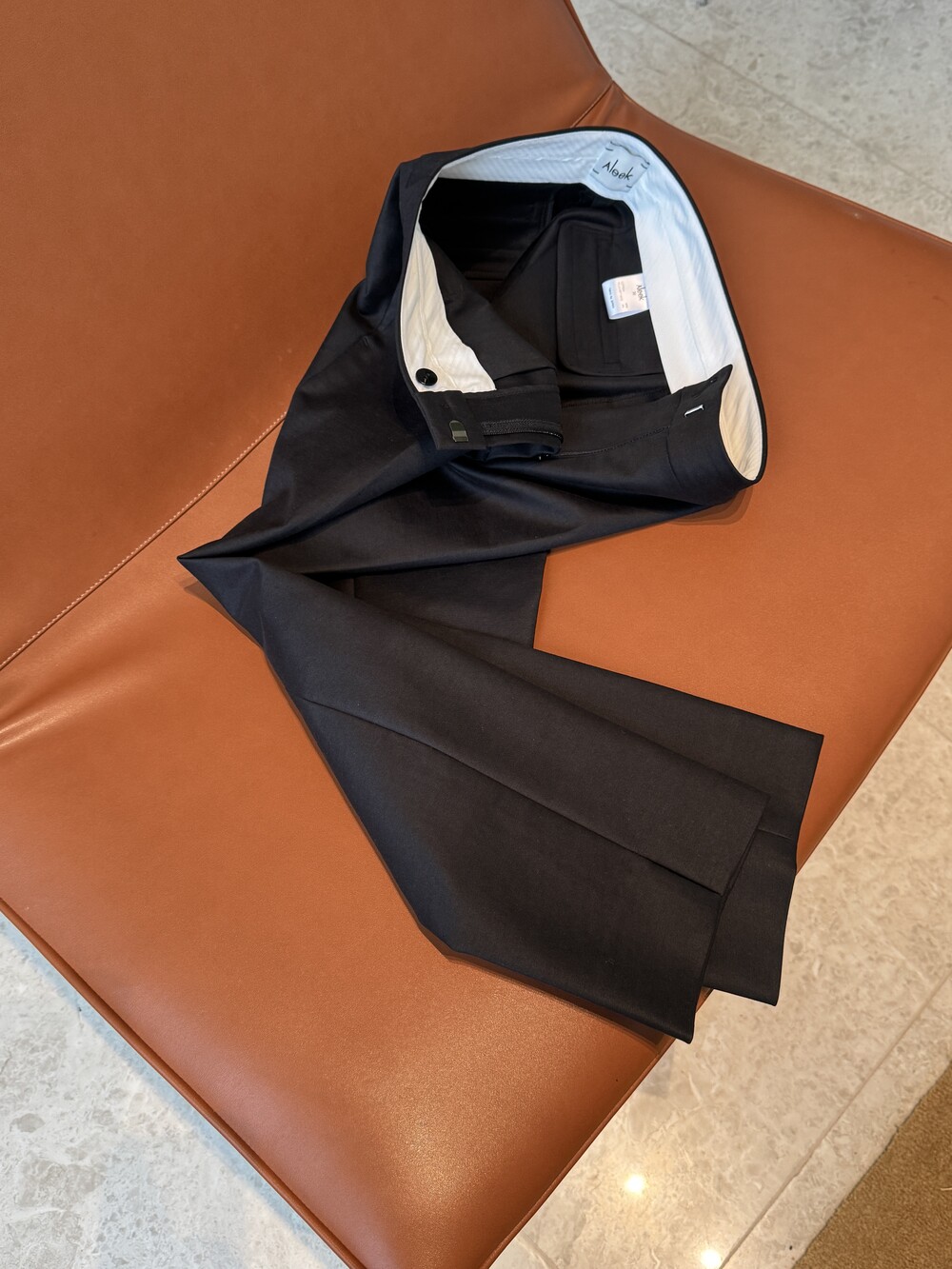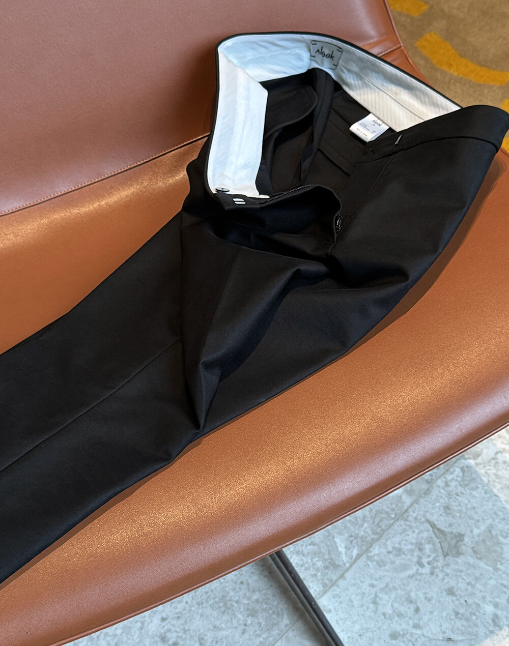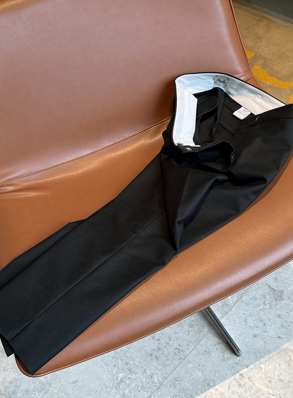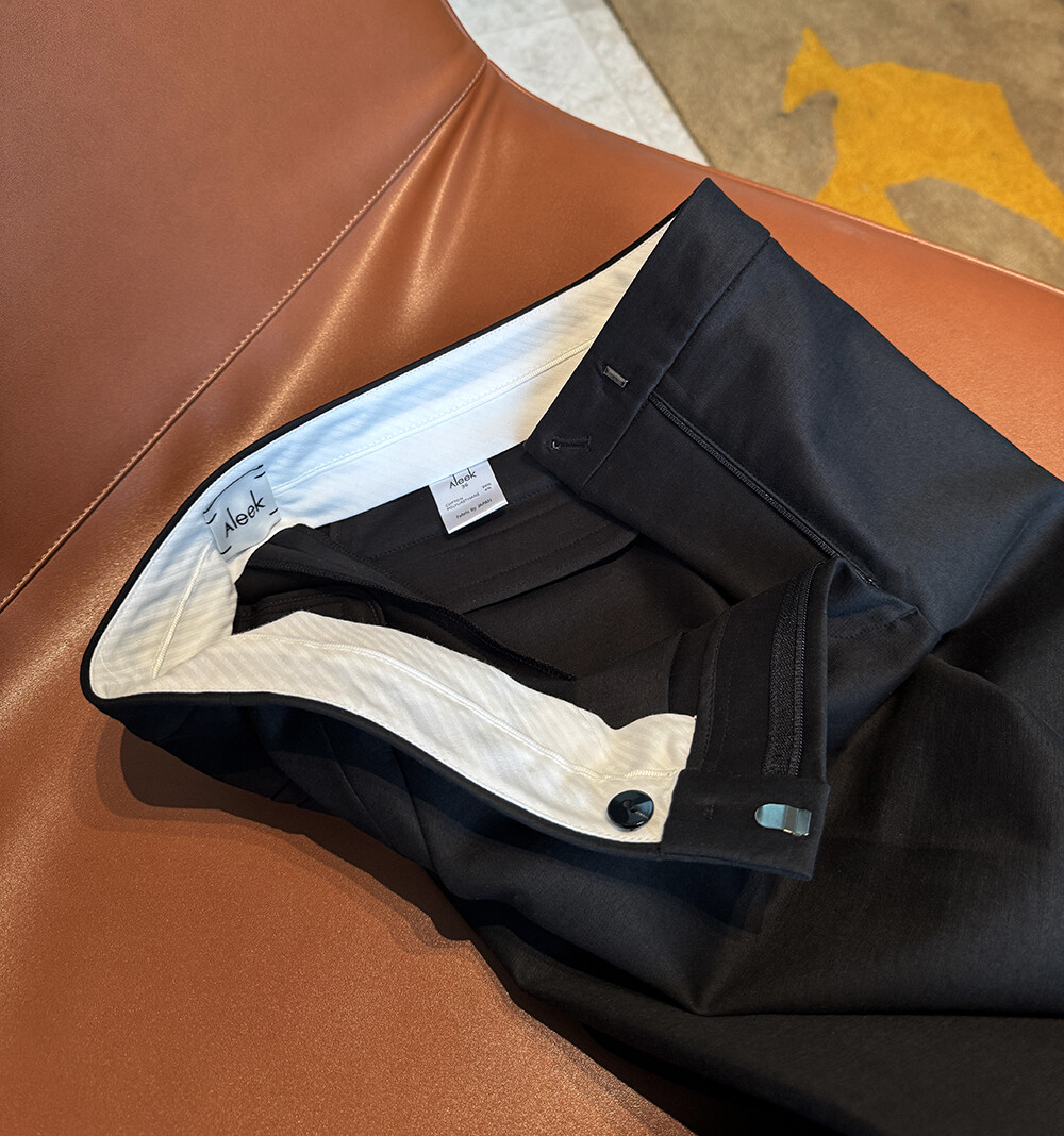 Aleek Stretch Cotton Slit Pointed Minimal PT의 미들 웨이스트 밑위감의 팬츠 입니다.