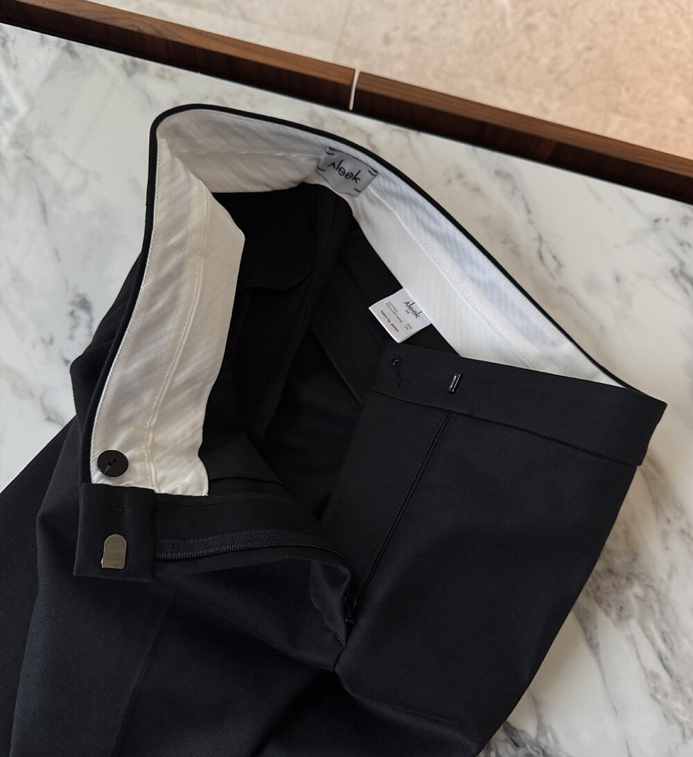 ***Aleek Stretch Cotton Slit Pointed Minimal PT의 미들 웨이스트 밑위감의 팬츠 입니다.***