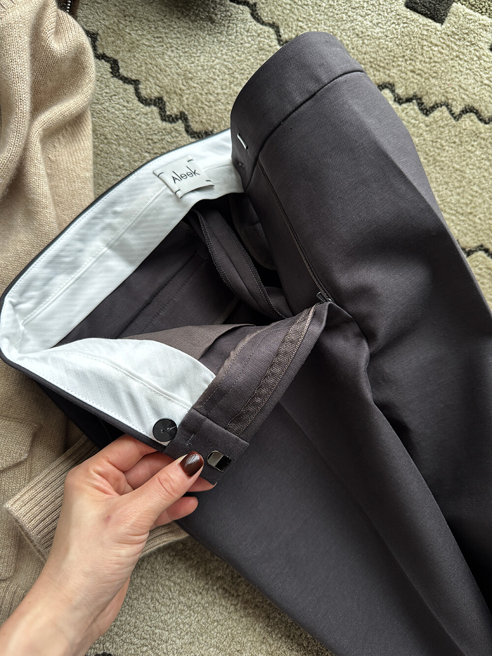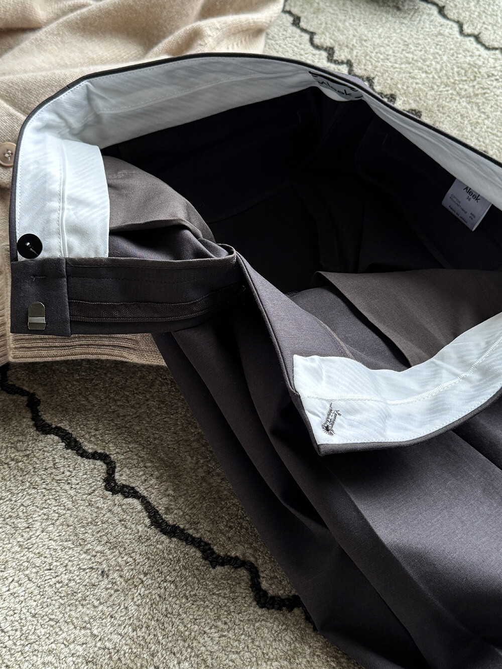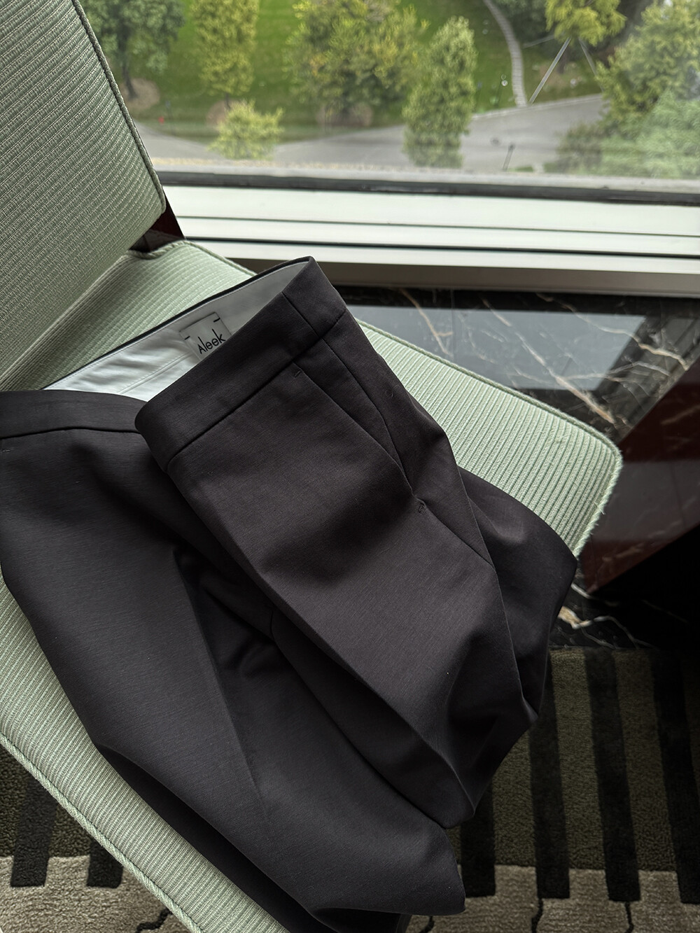 배꼽 선, 혹은 배꼽 조금 아래(개인의 신체조건에 따라 위치는 달라질 수 있습니다.)에 떨어지는 밑위감으로 안정감 있는 착용감과 테일러드 감성으로 허리선이 가늘어 보일 수 있는 허릿단 너비, 다트 또한 보여지지 않게 패턴안에 숨겨 작업되어, 말 그대로 미니멀하게 라인이 정리된 팬츠를 만나보 실 수 있습니다. 밑단은 사이드 슬릿으로 움직임의 실용성은 물론 팬츠가 떨어지는 실루엣을 한층 더 길고 슬림하게 표현해 줍니다.