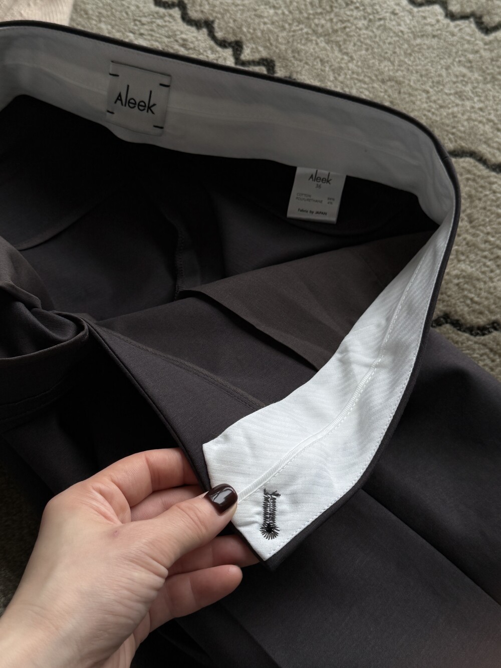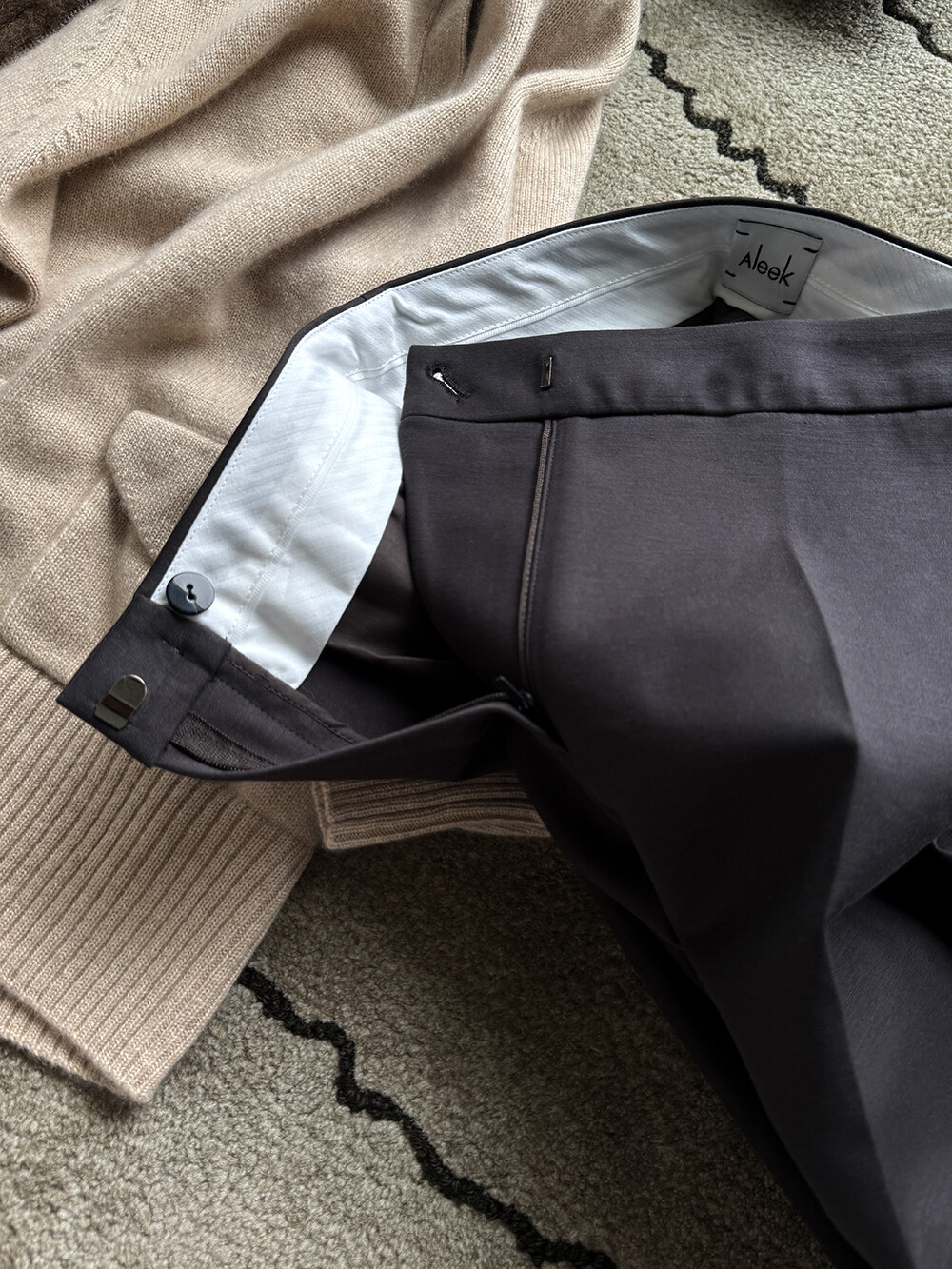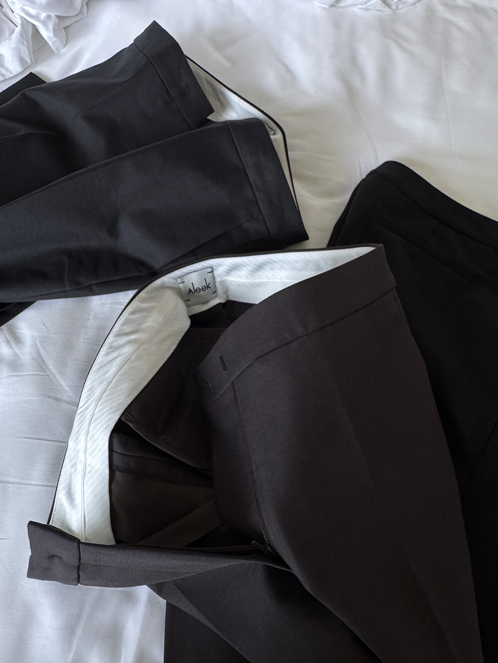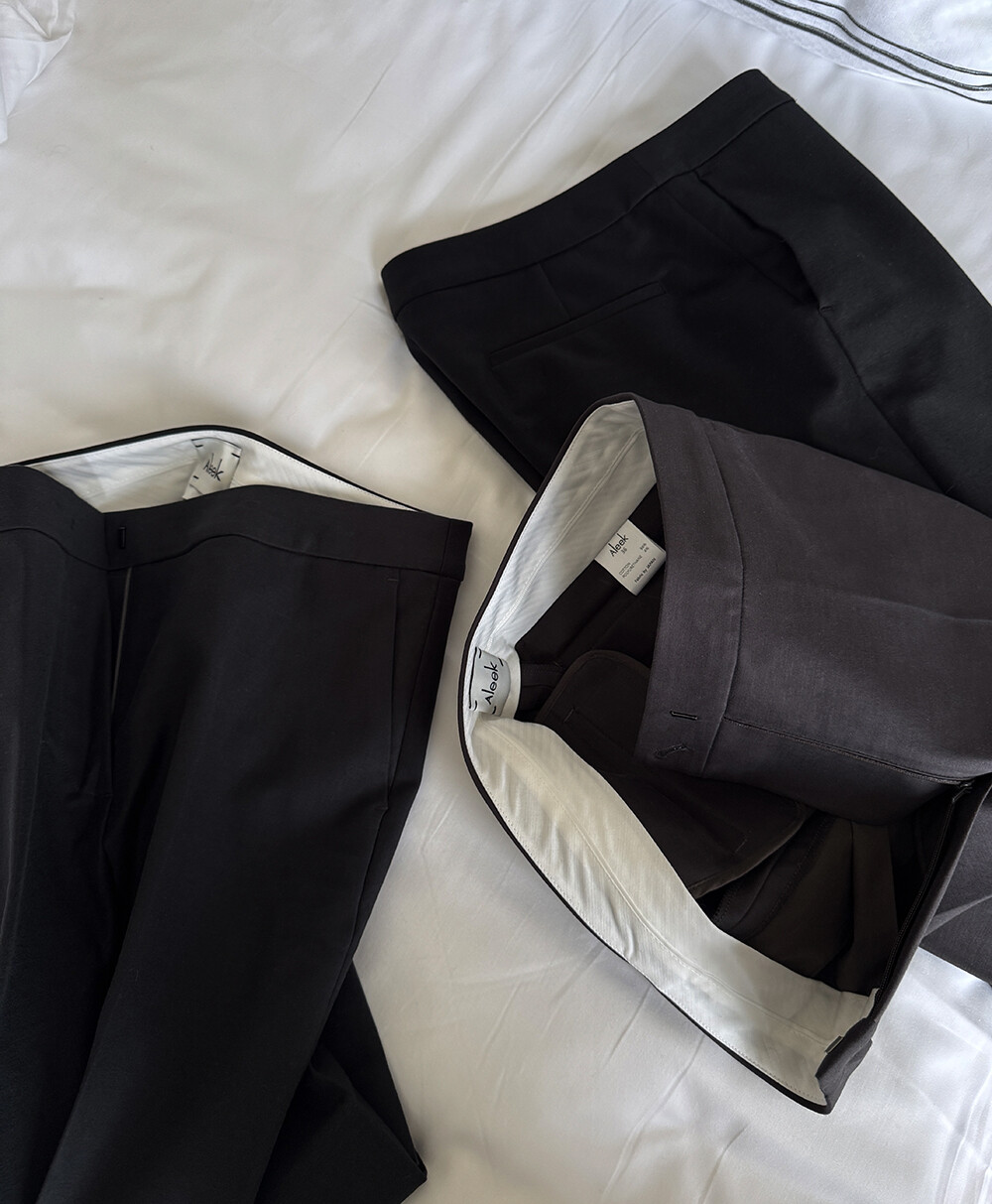 Aleek Stretch Cotton Slit Pointed Minimal PT의 미들 웨이스트 밑위감의 팬츠 입니다.