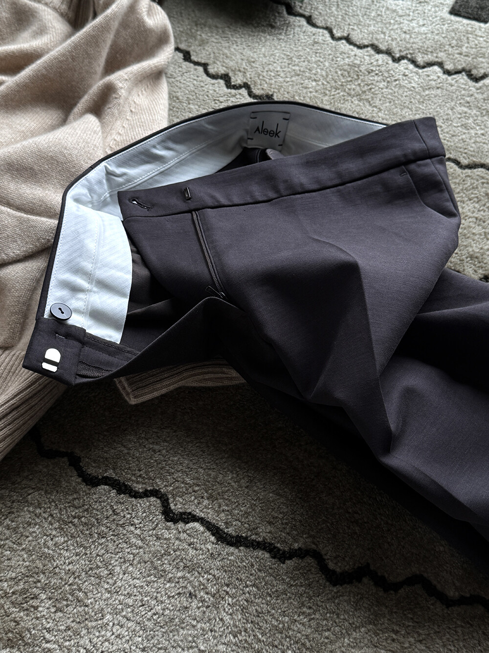 Aleek Stretch Cotton Slit Pointed Minimal PT 는 실키한 코튼 스판 원단으로 제작된 겨울용 코튼팬츠 아이템으로 데일리하게 다양한 가을/ 겨울 아우터와 함께 베이직하면서 슬림하게 착용 하시기 좋은 에센셜 팬츠 입니다.