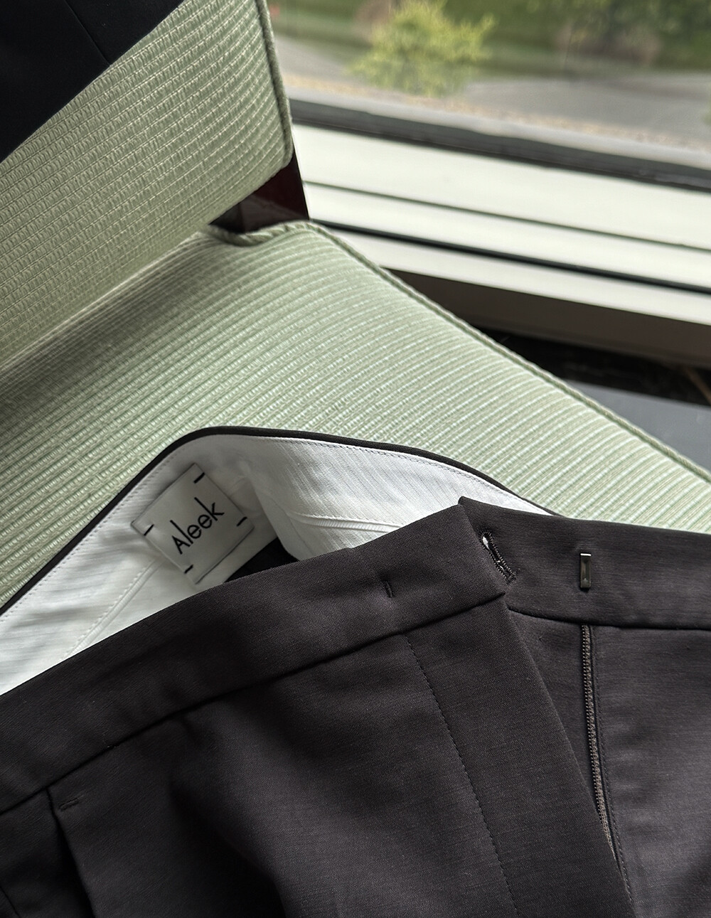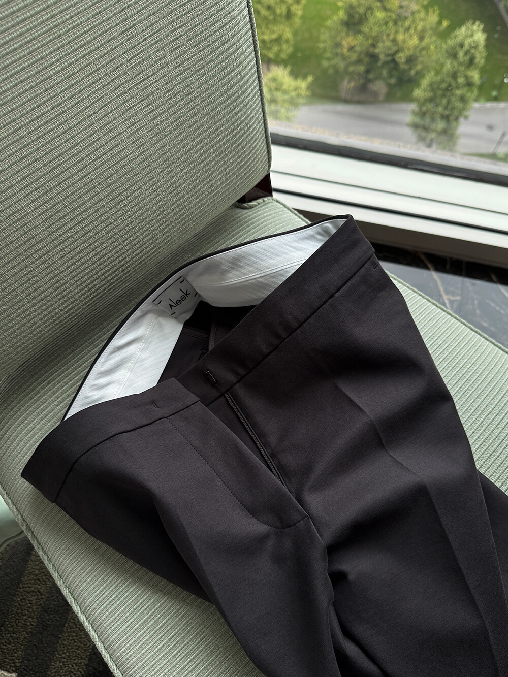 코튼이 가지는 편안함과 더불어 무딘 원단결이 아닌 실키 하면서 입체감이 느껴지느 고급스런 실키 수피마 코튼 텍스처로 에센셜한 핏감을 테일러드 감성과 함께 느껴보실 수 있는 Aleek Stretch Cotton Slit Pointed Minimal PT 입니다.