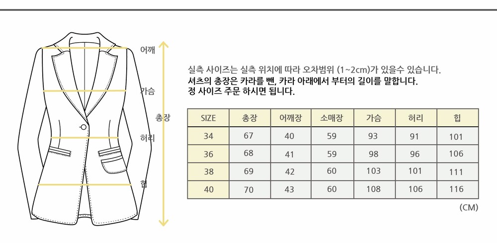 사이즈: 34(44), 36(55), 38(66), 40(77); 정 사이즈 추천 드립니다. (상세 사이즈 하단 참고)