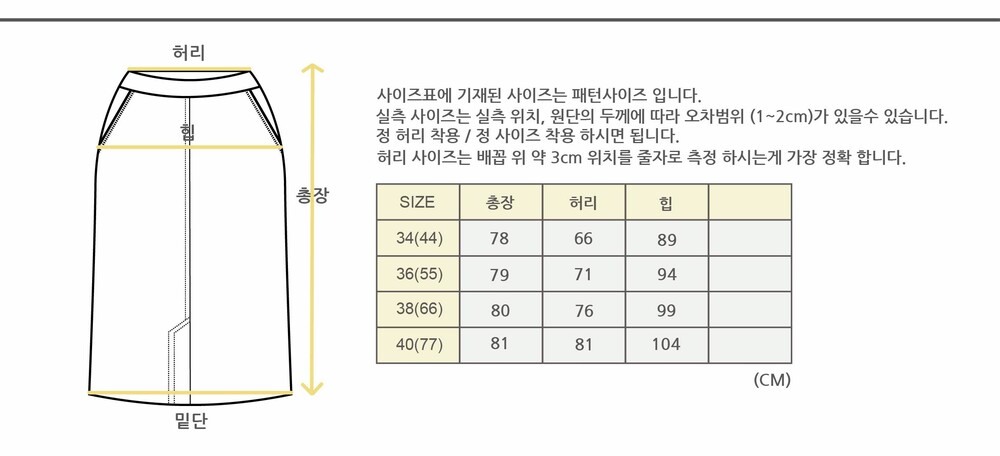 (여름 계절의 주름 스커트는 약간 낙낙한 사이즈로 추천 드립니다. 골반 / 힙 사이즈가 크신 분들은 사이즈 상담 추천 드립니다.