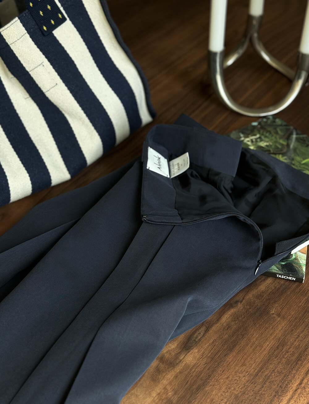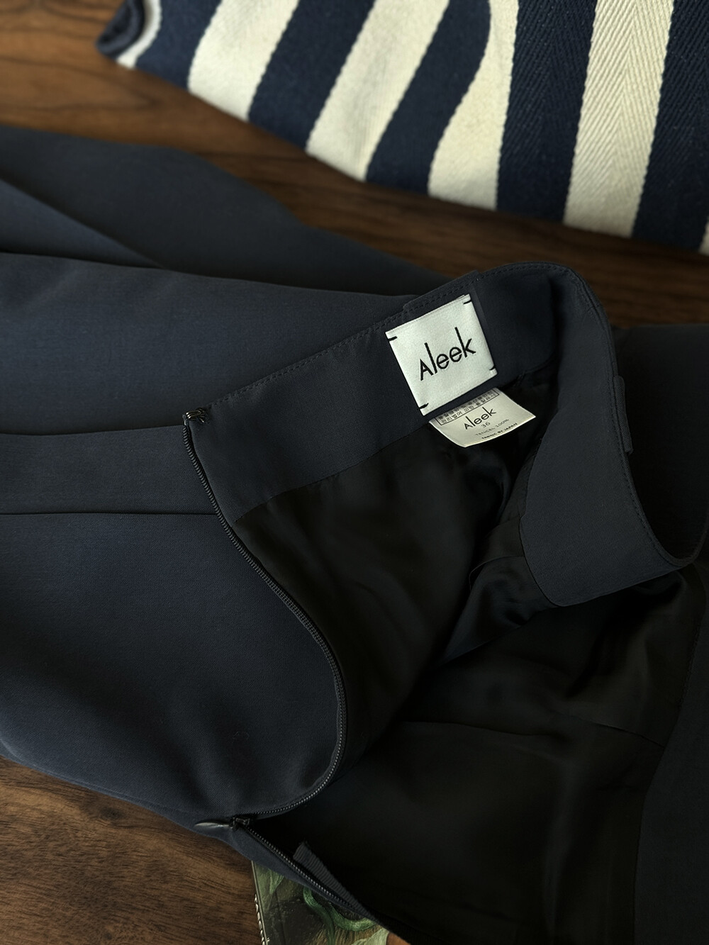 허리밴드 부분의 화살표 모양의 벨트고리 디테일이 허리라인을 분산시켜라인을 더욱 슬림하게 표현해 주고 허리 부터 중힙까지의 주름의 턱을 막아 주름의 벌어짐을 방지함과 동시에 허리에서 이어지는 중힙의 라인을 더욱 슬림해 보일 수 있게 제작 하였습니다. 앞 / 뒤 의 볼륨감이 다른점을 가만하여 앞 / 뒤 주름의 위치와 갯수를 고려하여 패턴화 하고 멀티 플레이된 주름의 방향 (맞주름)이 하체의 중심을 부해 보이지 않게 잡아주면서 사이드로 지정한 외주름으로 우아한 움직임을 즐기실 수 있게 제작 되었습니다. 지퍼에는 골지밴드를 덧대어 세밀하게 마감하고, 내구성과 원단 흐름 표현이 뛰어난 일본산 수입 심지를 사용하여 원단의 움직임을 보완하고 극대화 하였습니다.컬러감과 내구성, 통기성이 뛰어난 정품 통관한 original Bemberg 큐프로 100 안감으로 스커트를 마감 하였습니다. 종아리 중간 조금 아래 떨어지는 기장감으로 기장추가 옵션을 통해 기장을 선택하여 주문 가능 합니다.
