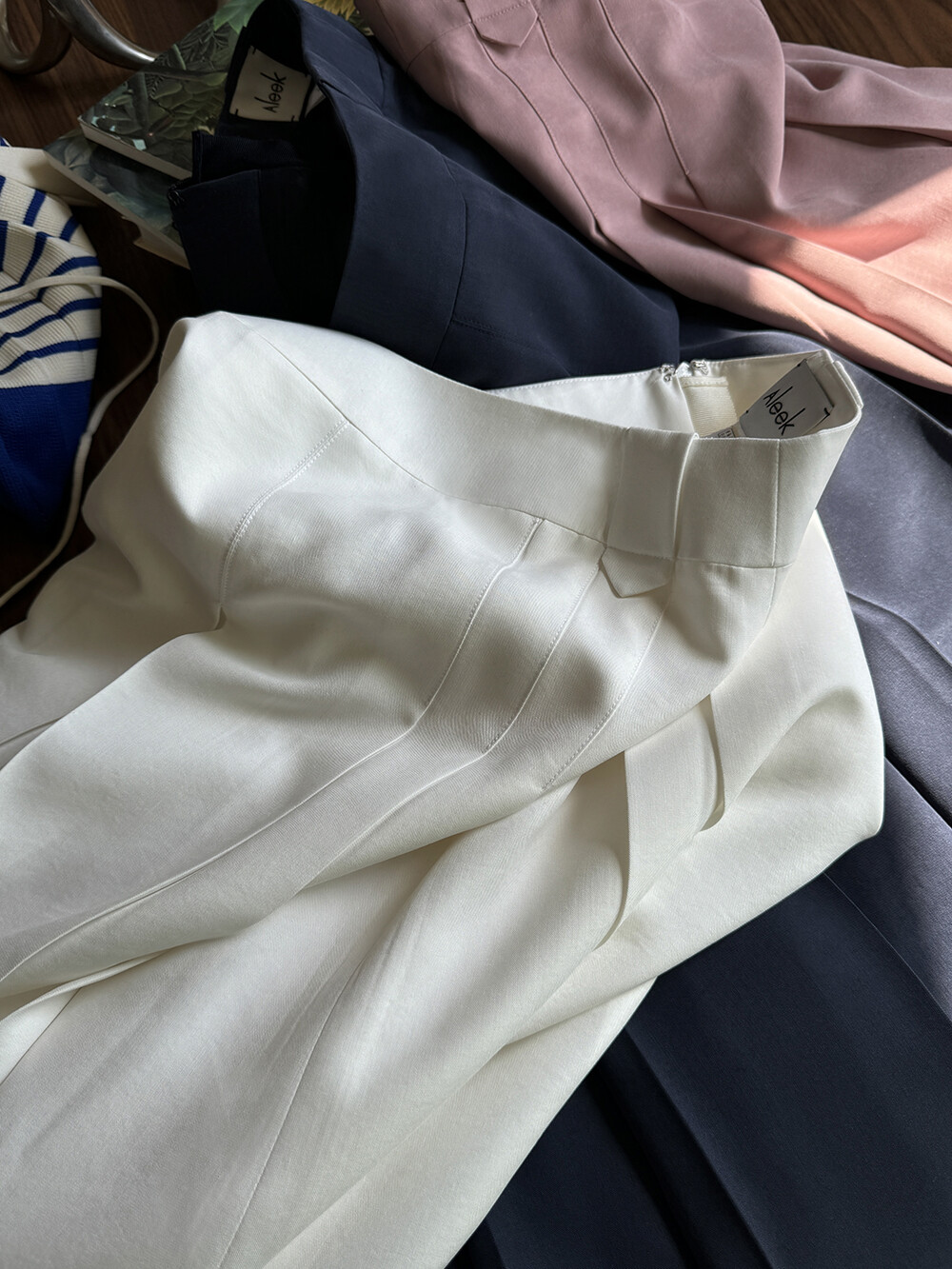 퓨어 화이트의 매력은 여름에 더욱 빛을 발할 컬러 입니다. 미니멀무드를 연출 하시기에도, 톤온톤 화이트룩을 연출 하시기에 좋은 에센셜 아이템 입니다. 올 화이트룩 혹은 상의로 추천드리는 니트웨어의 다양한 컬러와도 잘 어우러질 컬러로 여름의 베이스 컬러로 '퓨어 화이트' 를 추천 드립니다.