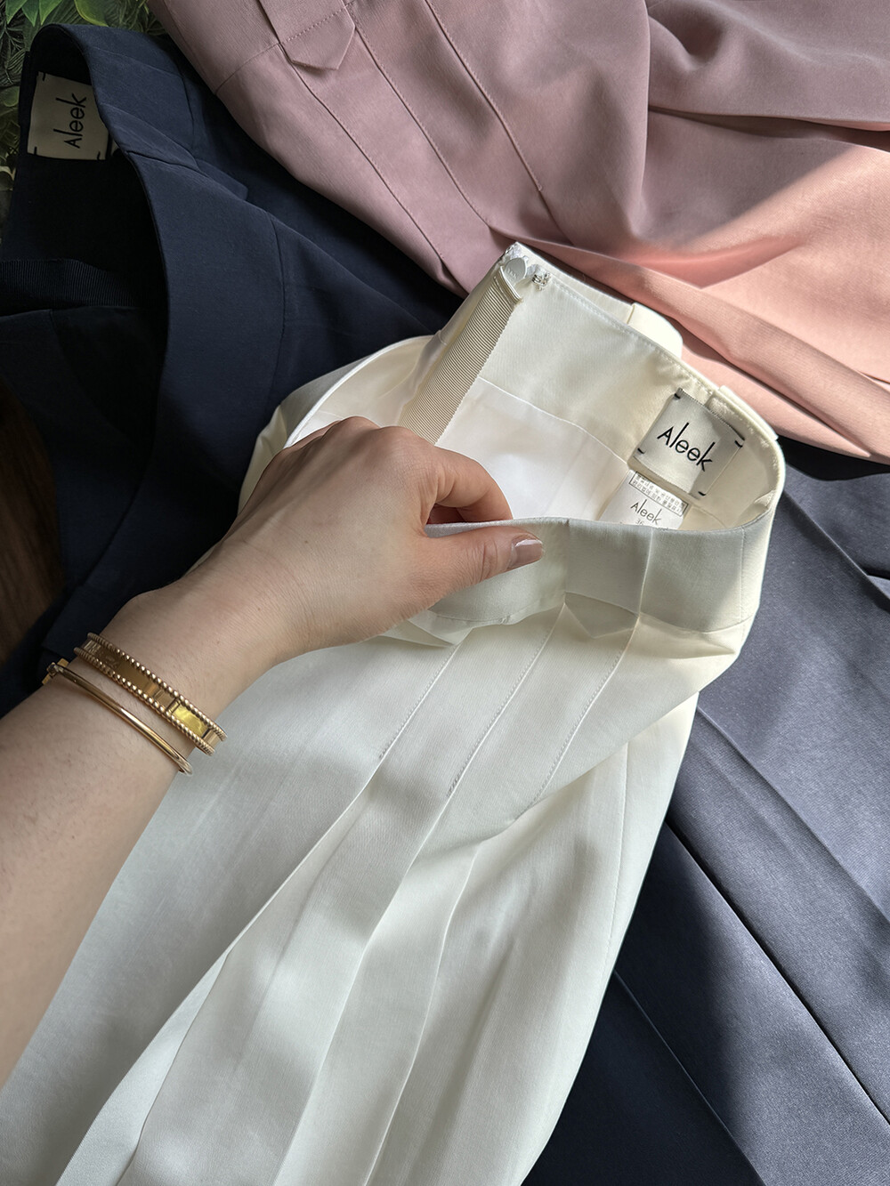 아리크 레이디 멀티 플리티드 플리츠 스커트는 주름의 스타일이 멀티플레이 된 플리츠 스커트로 맞주름과 외주름을 조합하여 주름스커트의 무드와 감성을 즐기시면서 유니크한 벨트고리 디테일과 아리크 스튜디오의 하이퀄리티 봉제 마감이 결합된 프리미엄 스커트 입니다. 가을 / 겨울 / 초봄에 착용 하시기 좋은 Abraham Moon 의 헤리티지 원단 Cavalry / Covert 원단으로 제작한 아이템에 이어 봄 / 여름의 친환경 소재, Tencel 원단으로 소프트한 터치감과 부드러운 물결같이 흐르는 원단의 결과 함께 SS 아이템으로 선보이는 Aleek Tencel Multi Pleated Pleats SK으로 70년대의 클래식한 감성을 미니멀하고 모던하게 풀어내었습니다.