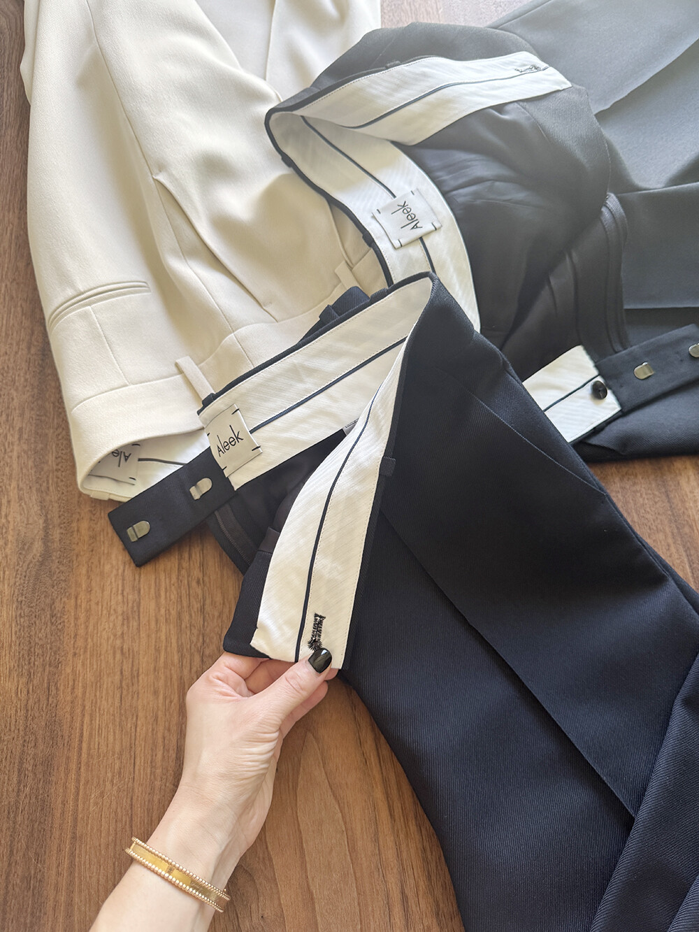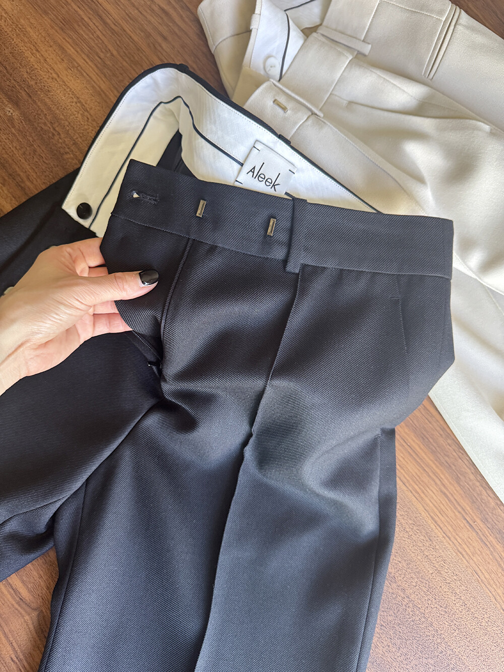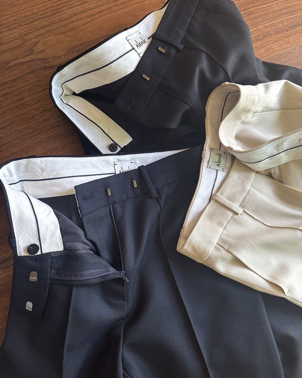 아리크 스튜디오는 이번 시즌, 소개드리는 Aleek Twill Wool Blended Straight -leg Pintuck Pointed PT 에서 오스트레일리안 울 / 비스코스 혼방의 매력을 소개드리고 고급스러운 따뜻함과 실용적인 세련미를 동시에 담아내면서 절제된 우아함, 지속가능한 클래식의 부드러움과 강인함이 어우러진 균형잡힌 세련된 라이프스타일 에센셜 가을/겨울 아이템으로 추천 드립니다.