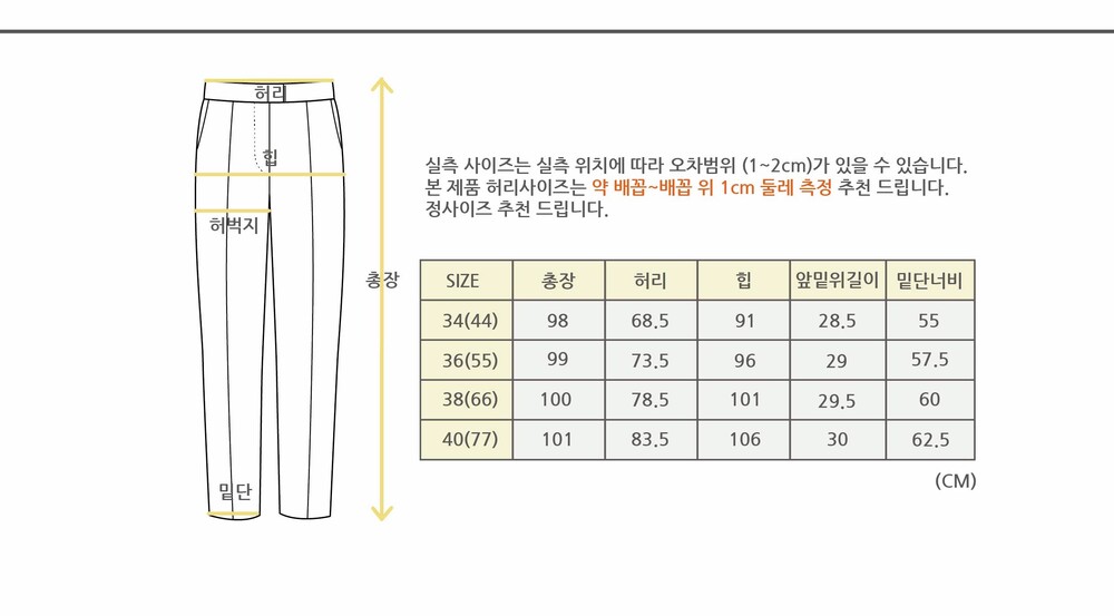 사이즈: 34(44),36(55),38(66),40(77) 정사이즈 추천 드립니다.(상세 사이즈 사이즈표 참고)