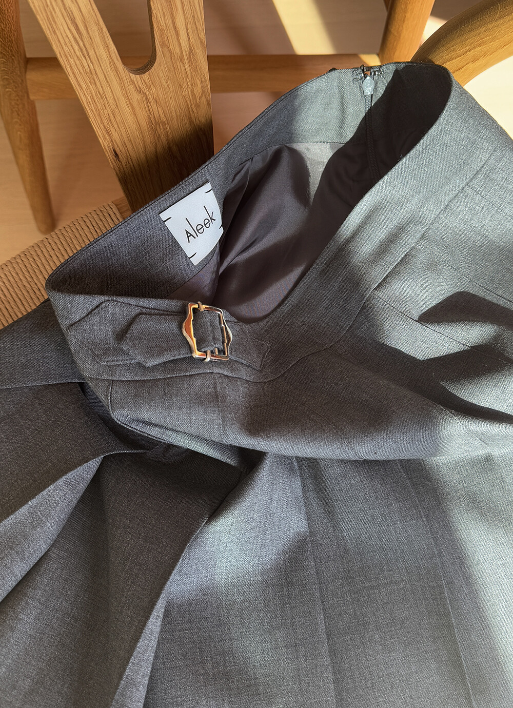 Aleek Wool Blended Gentle Pleats SK_Smoked Pearl Gray
