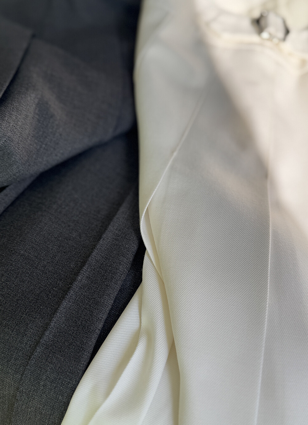 이태리 / 오스트레일리아 / 일본 등 청정지역의 울을 수입하고 독보적인 기술력으로 울을 생산하는 타키사다의 안정감있고 높은 퀄리티의 울원단으로 이번해 new arrive 된 300G 후반대의 결감이 뛰어나며 내구성과 구김에 강하여 울100% 제품 보다 구김걱정 없이 이지케어 하실 수 있다는 큰 강점 이 있는 원단 입니다. 캐주얼하고 네츄럴한 코튼의 무드가 가미되어 올드하지 않으면서 클래식한 감성을 함께 느낄 수 있는 울 원단으로 조직감이 치밀하고 원단의 흐름에 힘이 있으면서 네추럴하게 주름이 잘 떨어지며 허리 / 힙 분분을 원단의 탄탄함으로 한번 더 슬림하게 잡히는 느낌이 들어 플리츠 스커트의 부해보임이 커버가 되는 원단 입니다.