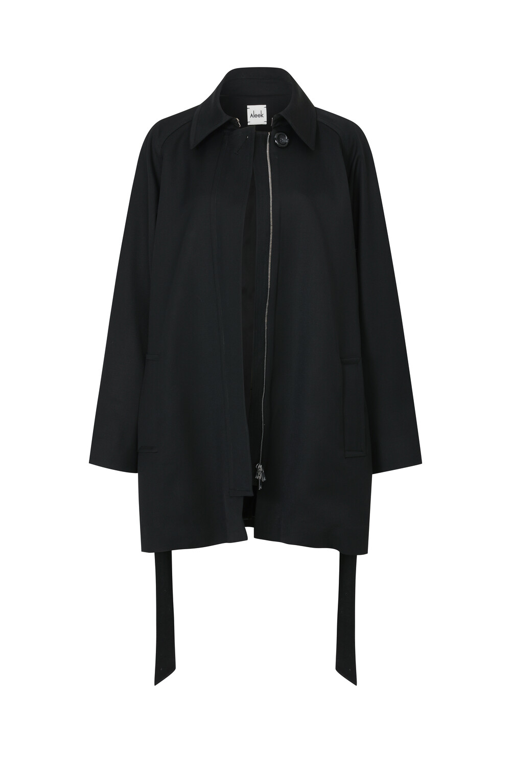 Aleek Wool Blended Raglan Sleeve Minimal Half Trench Coat_Midnight Ink Black Delivery