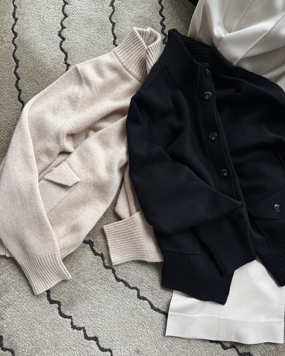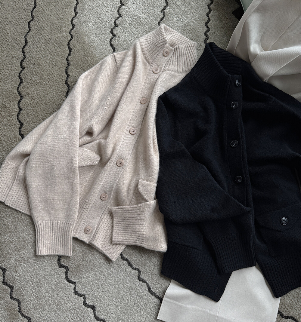 클래시하면서 타임리스 스타일의 버튼 업 가디건은, 이너로 셔츠와 매치하셔서 아우터의 개념으로 착용 가능하시고