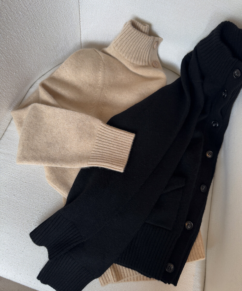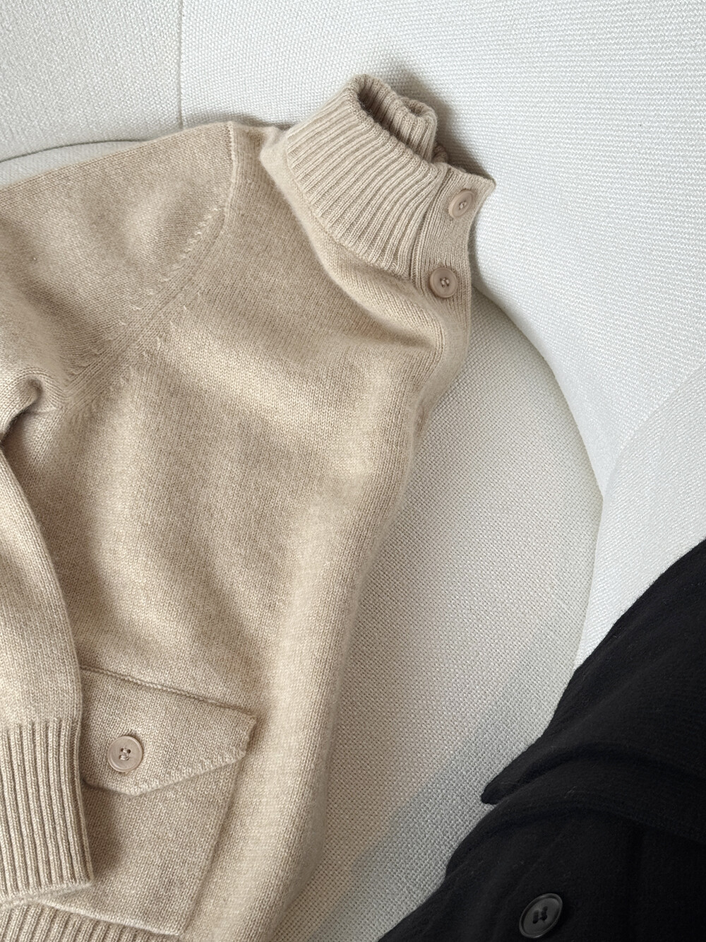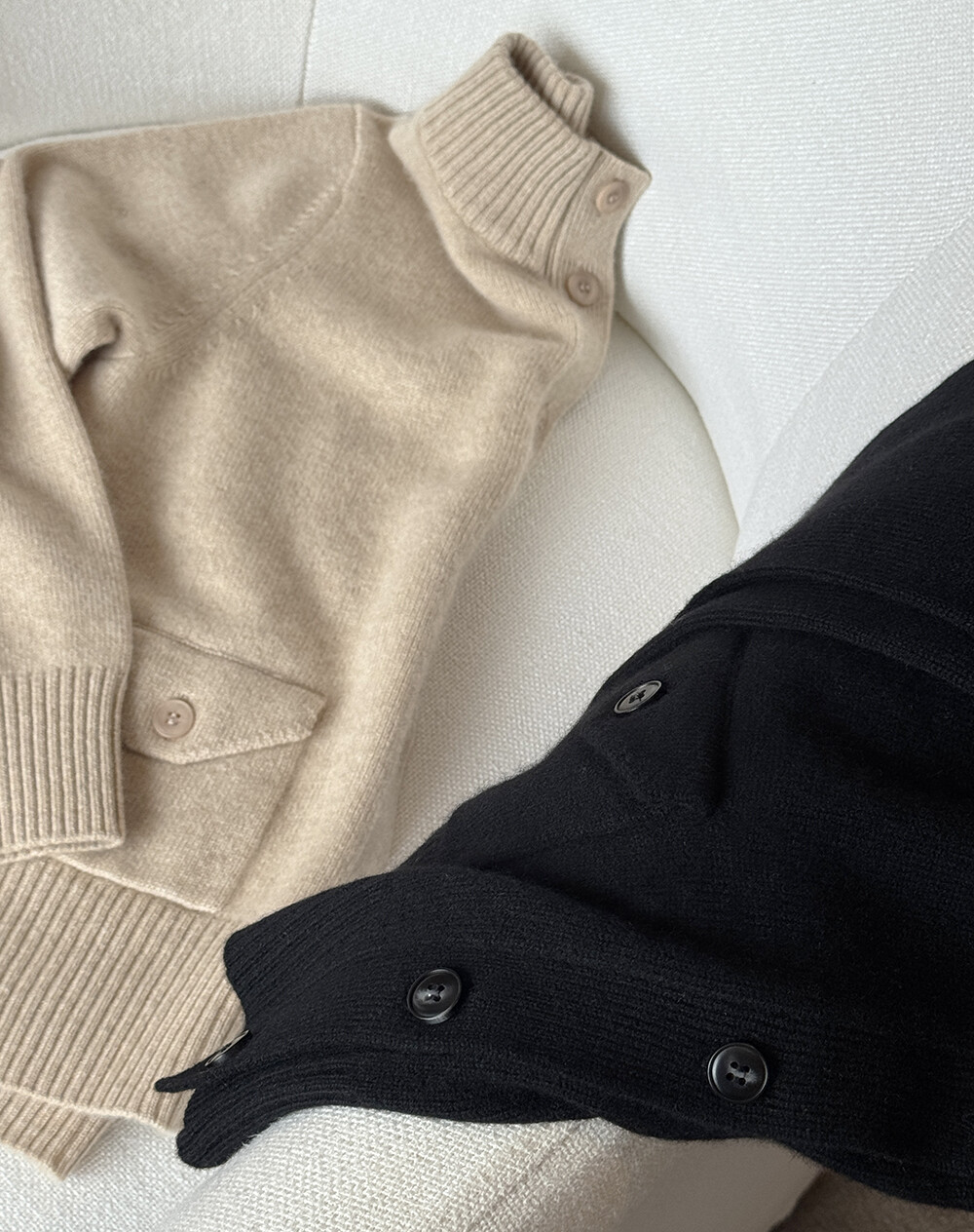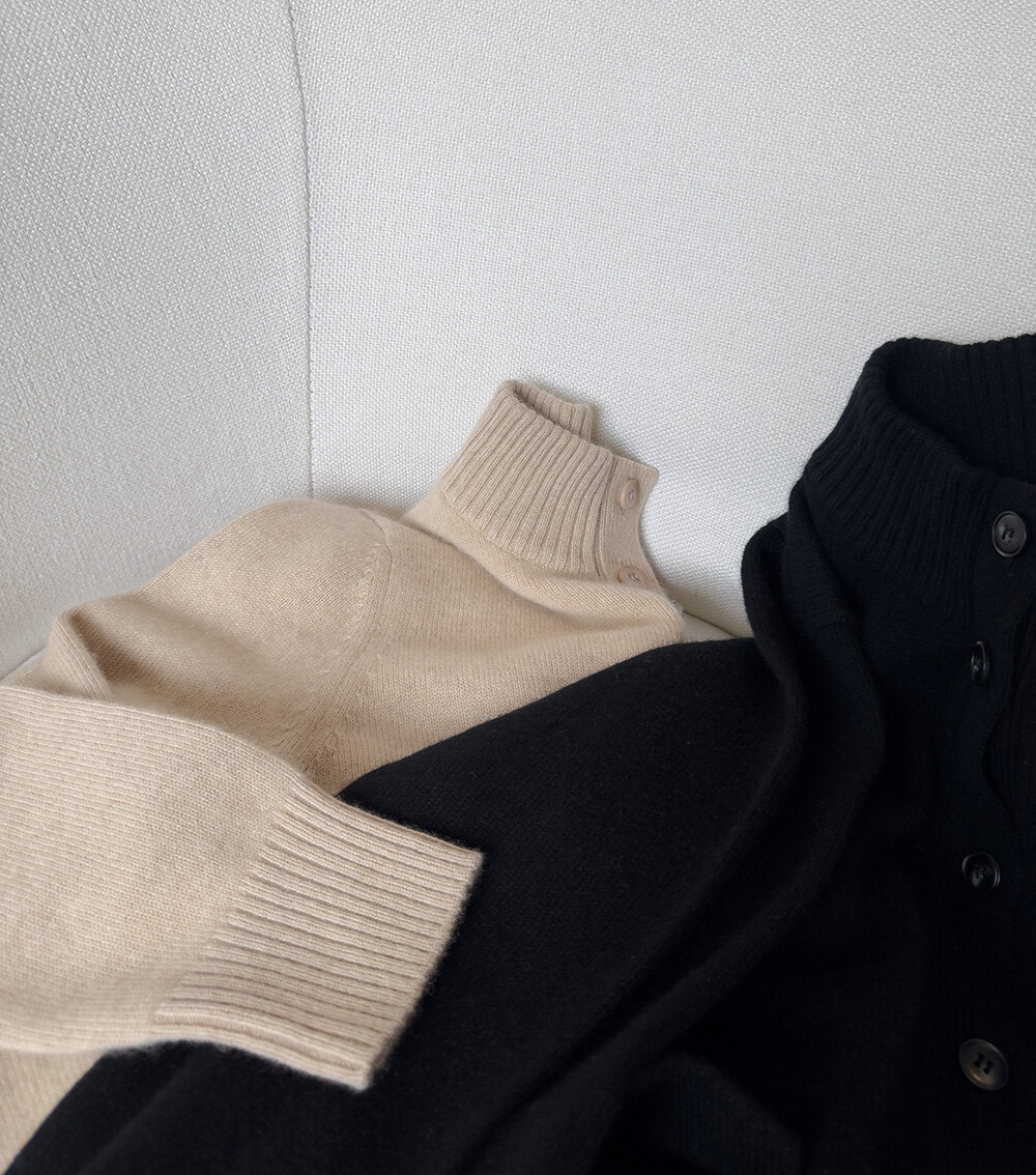 캐시미어코트 / 울 코트 / 패딩 이너웨어로 포인트 연출하기 좋으며 프리미엄 소재감과 클래식하면서 포인트 가미된 시보리 디테일들로 고급스러운 클래식 캐주얼스타일을 연출 하시기 좋은 아이템 입니다.