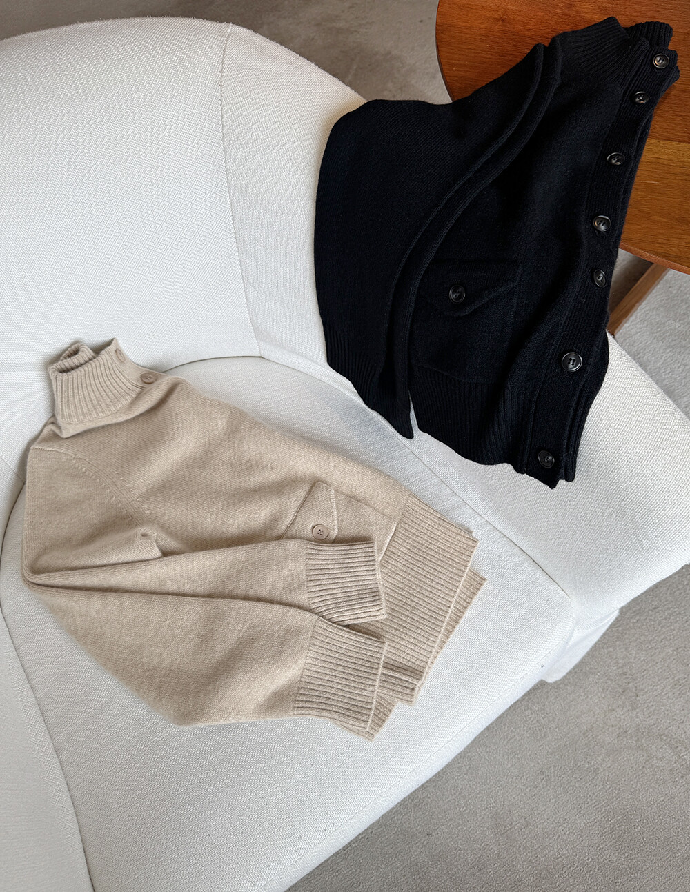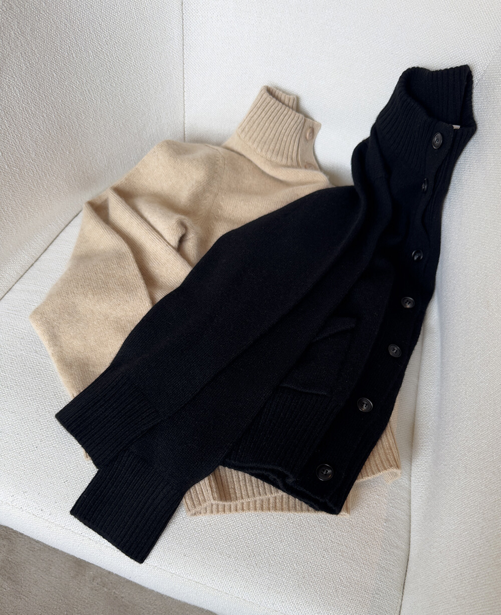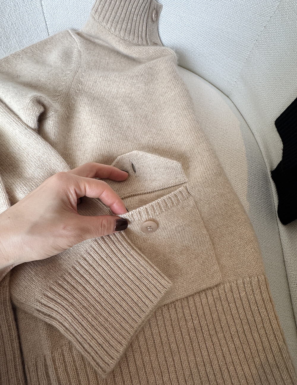 캐시미어코트 / 울 코트 / 패딩 이너웨어로 포인트 연출하기 좋으며 프리미엄 소재감과 클래식하면서 포인트 가미된 시보리 디테일들로 고급스러운 클래식 캐주얼스타일을 연출 하시기 좋은 아이템 입니다.