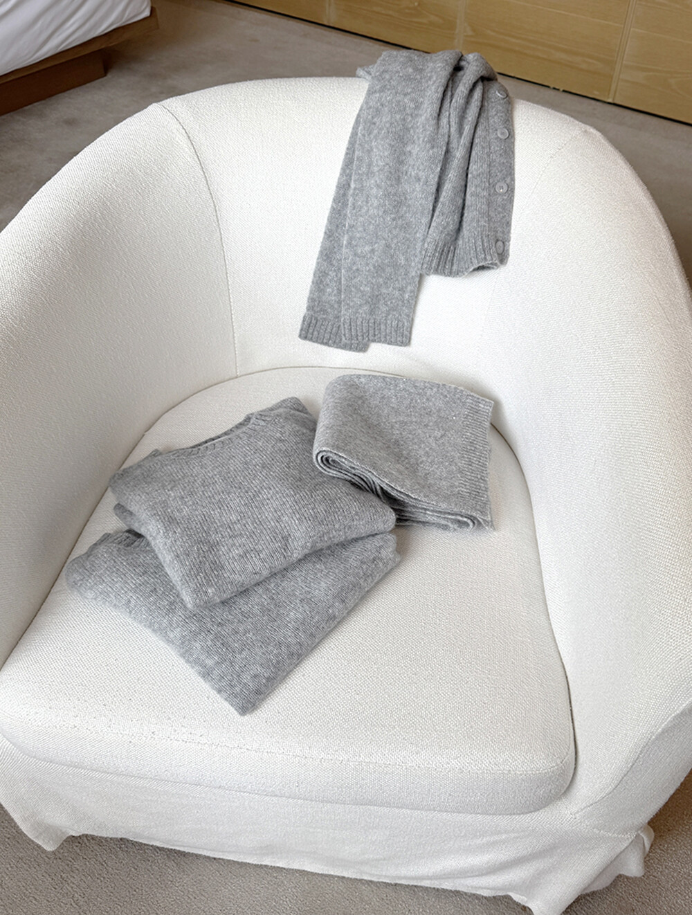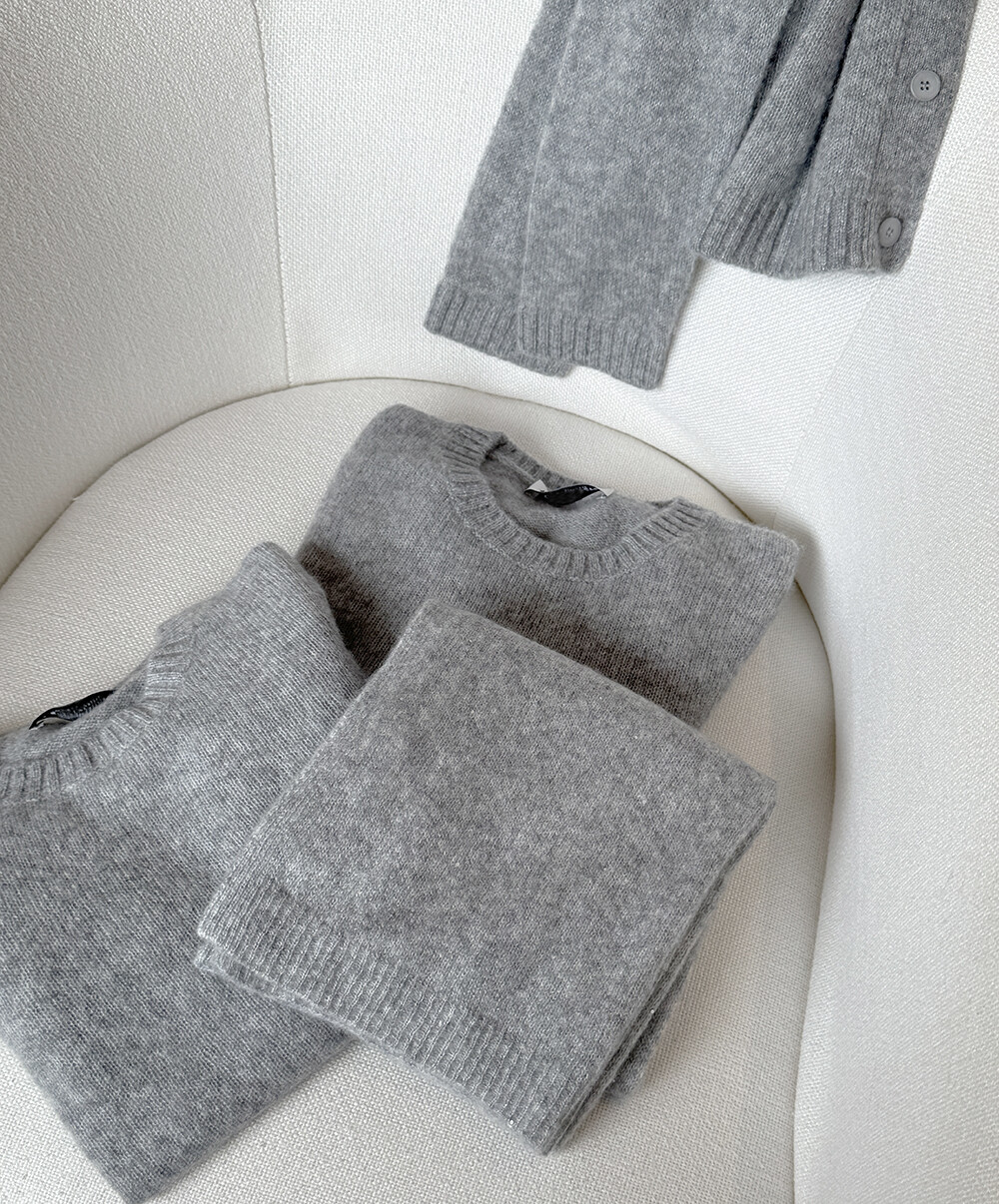 Aleek Mongolian Cashmere Silk Spangle Pointed Ensemble Knit Set_Snow Gray (각 아이템별 가격상이)