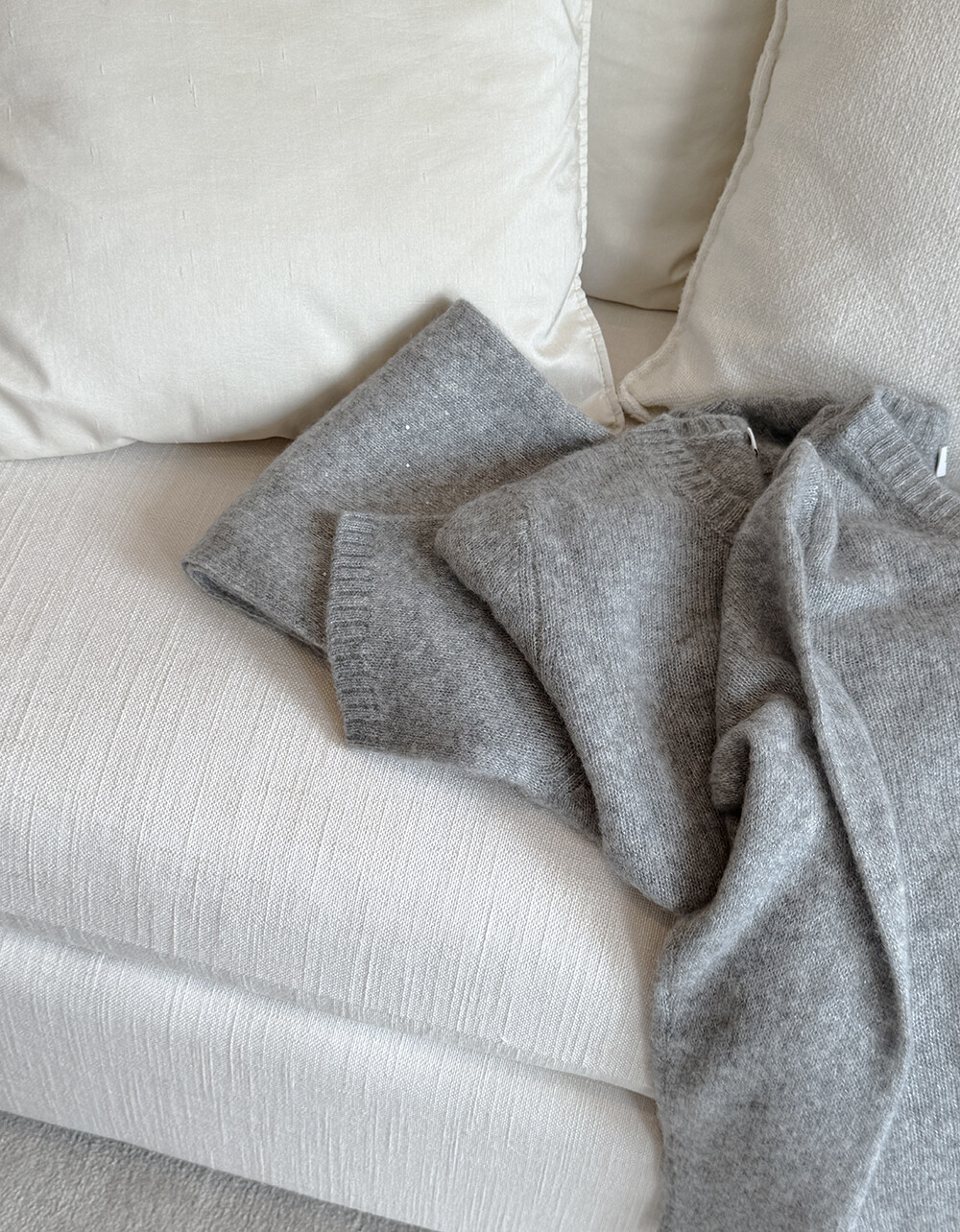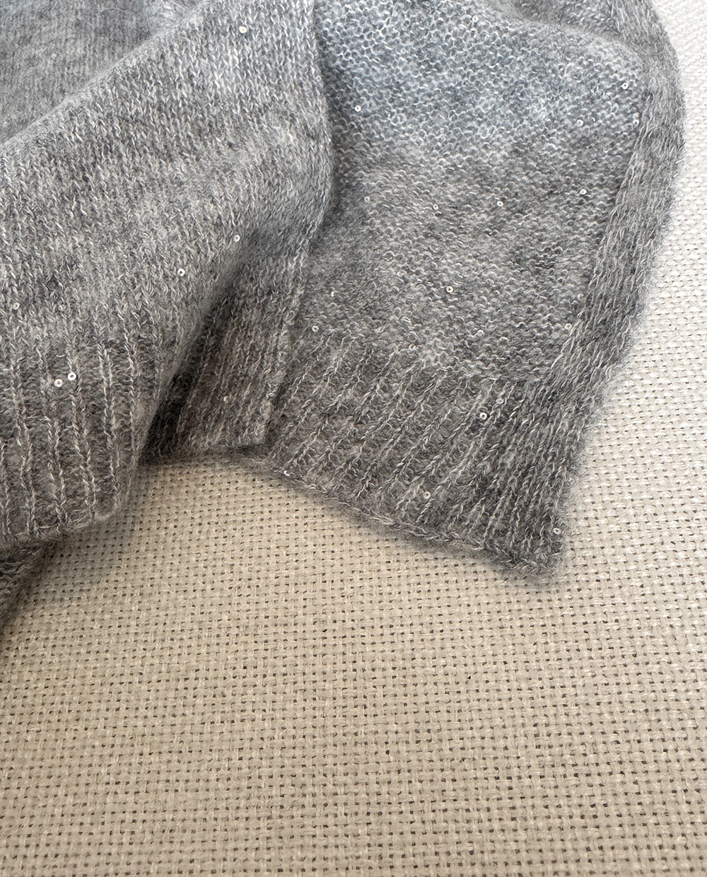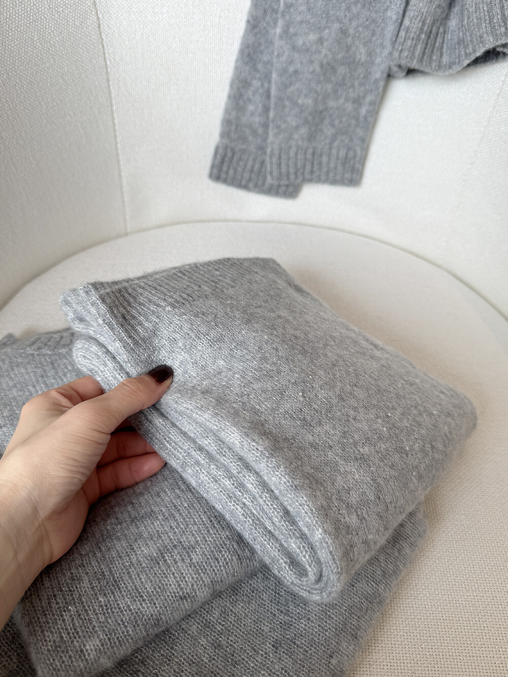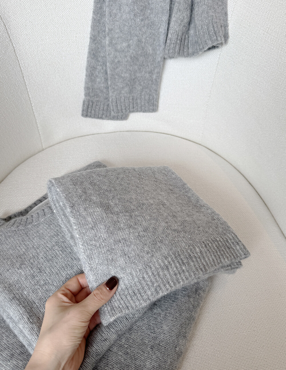 Aleek Mongolian Cashmere Silk Spangle Pointed Ensemble Knit Set_Snow Gray