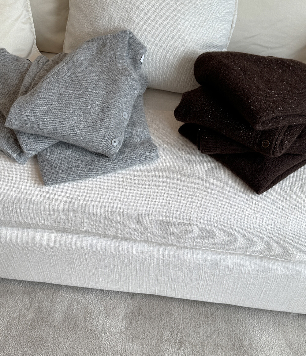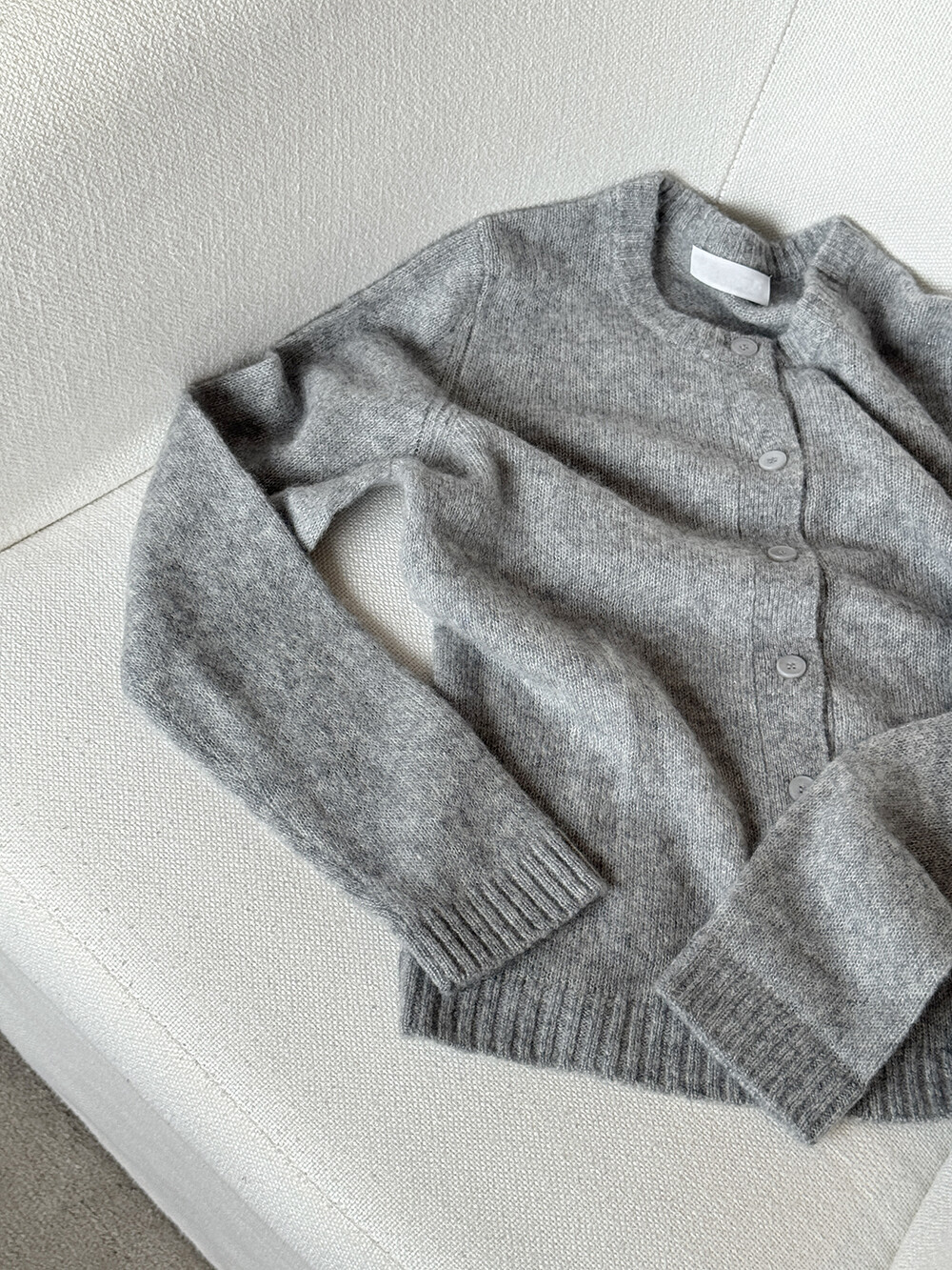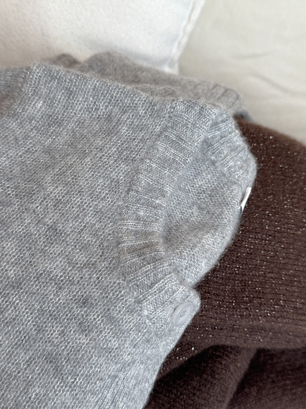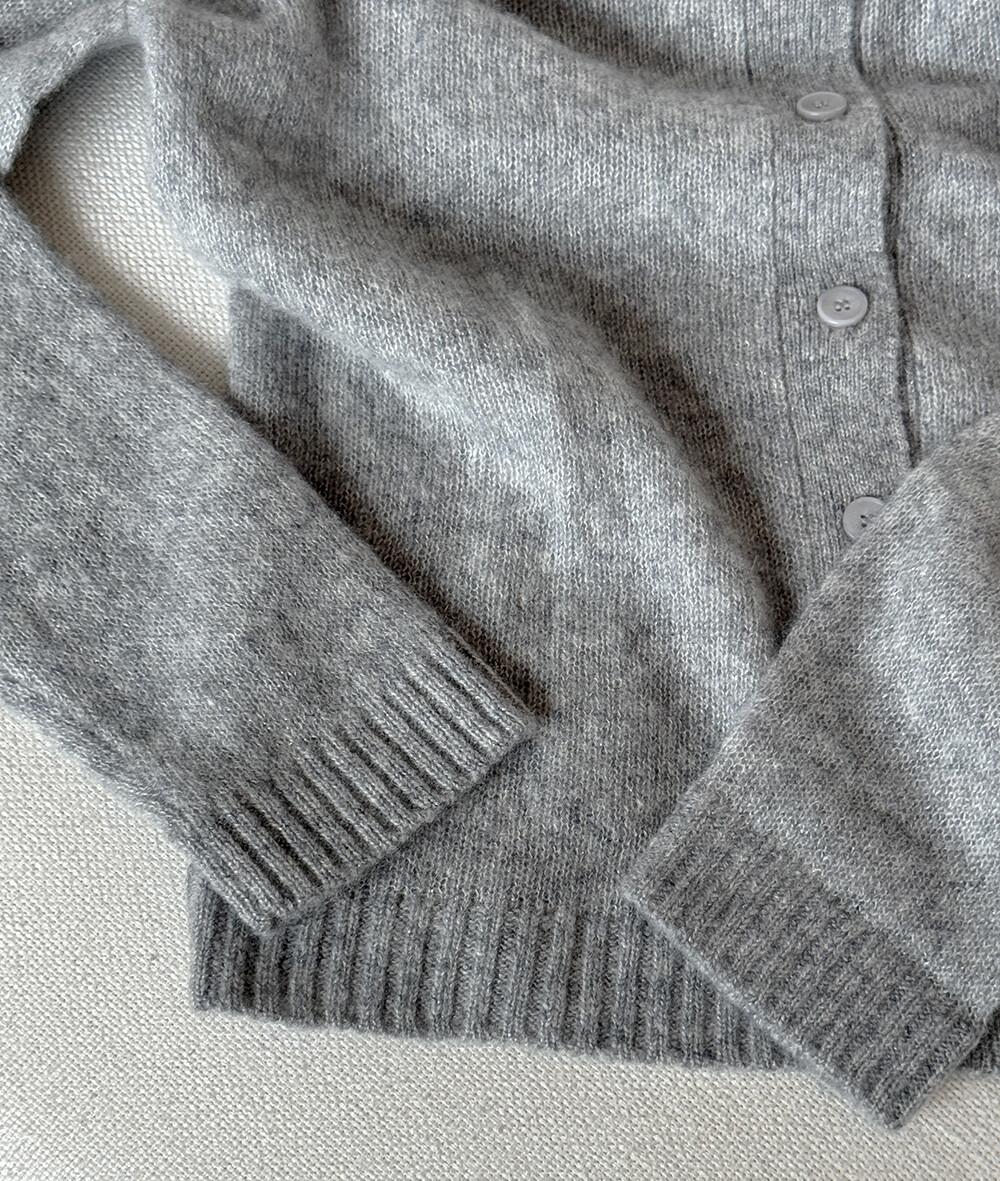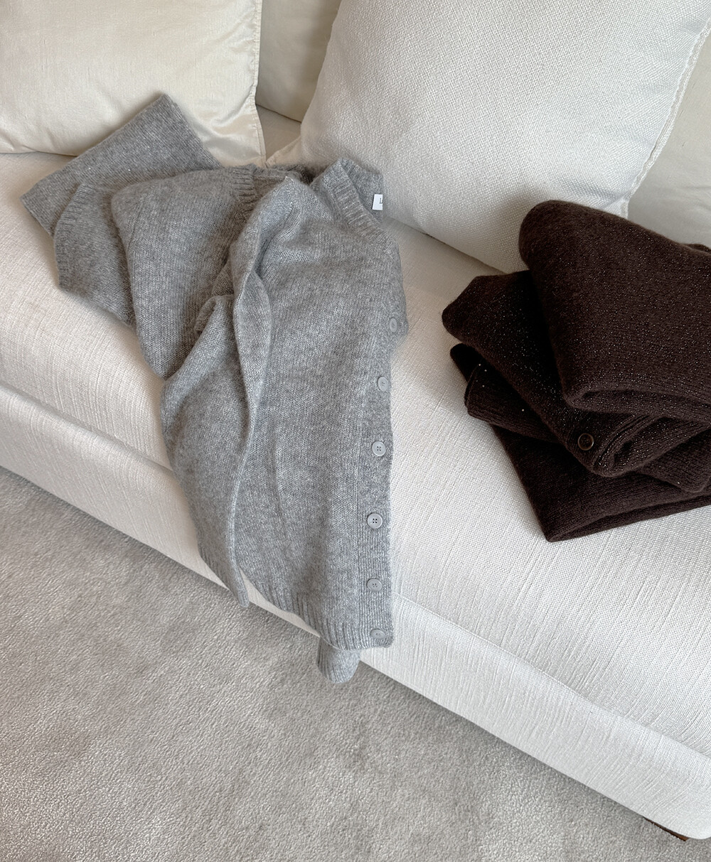 -Roundneck Cardigan : Mongolian Cashmere 75% Silk 23% Lurex 2% (Made in Mongolia)