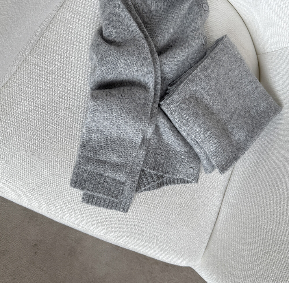 Mongolian Cashmere Silk Spangle Pointed Ensemble Knit Set_Snow Gray