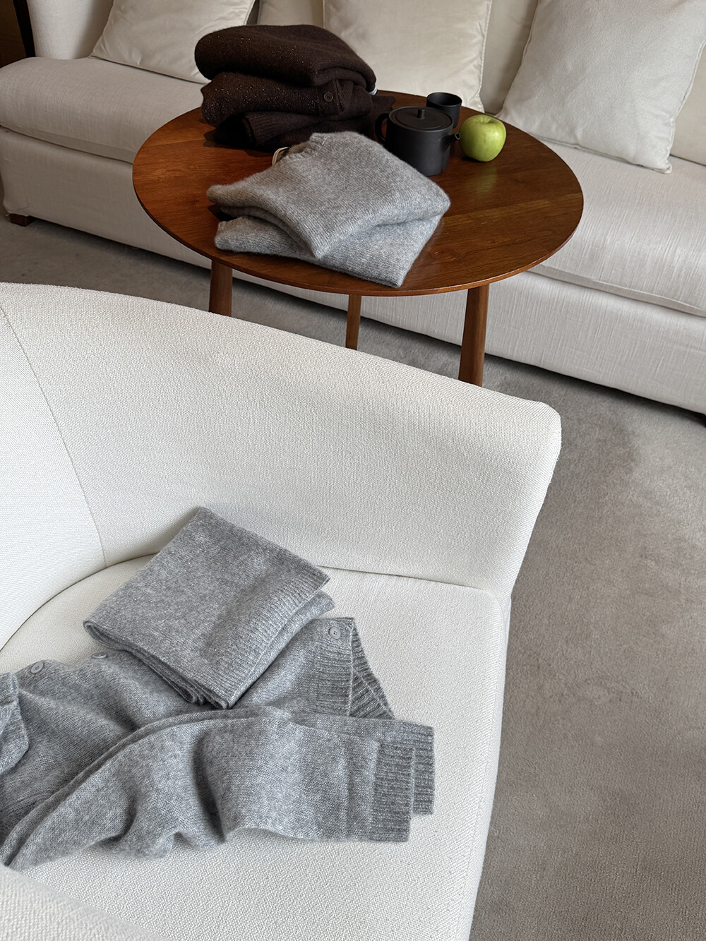 군더더기 없이 몽골리아 캐시미어의 부드러움과 조직감을 충분히 즐기시면서 라인이 깔끔하게 떨어지는 니트웨어 입니다.