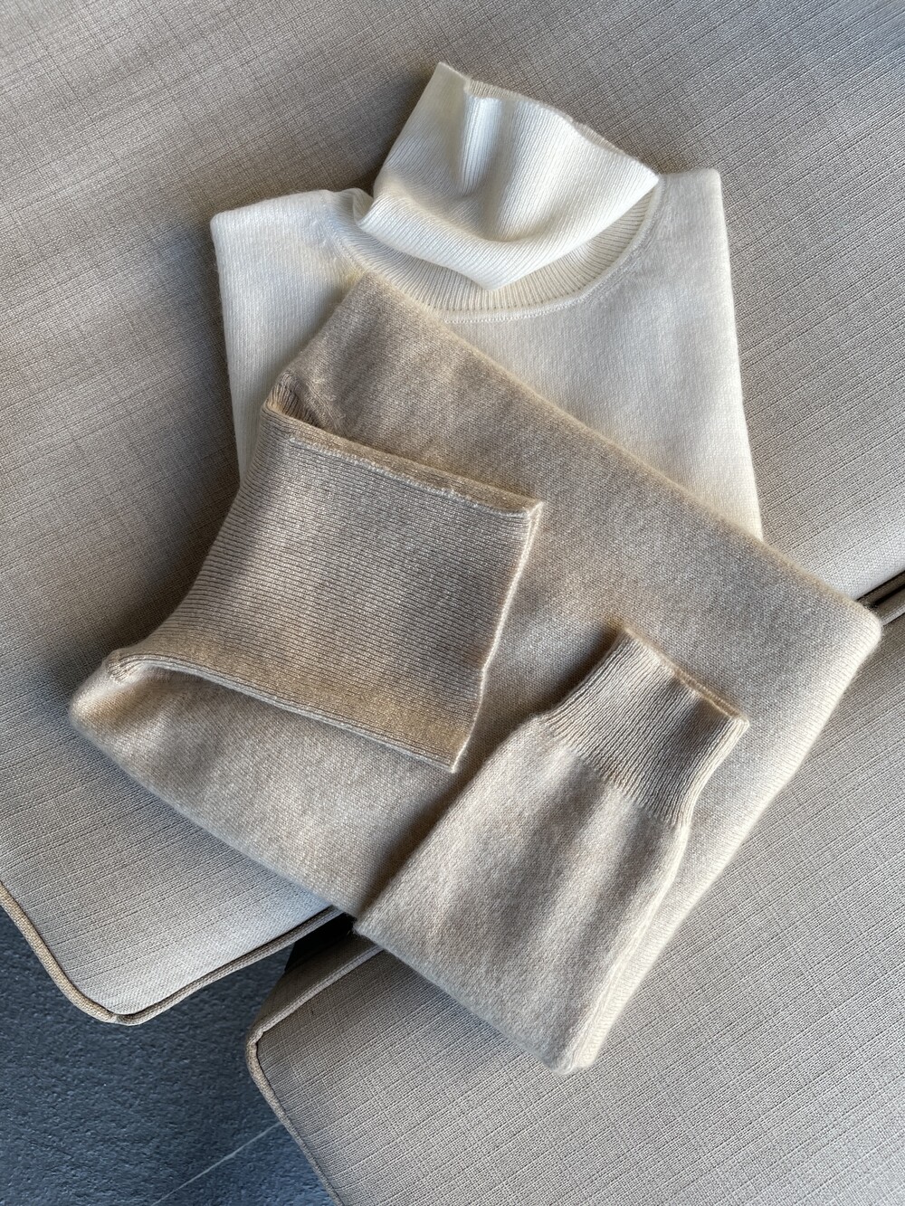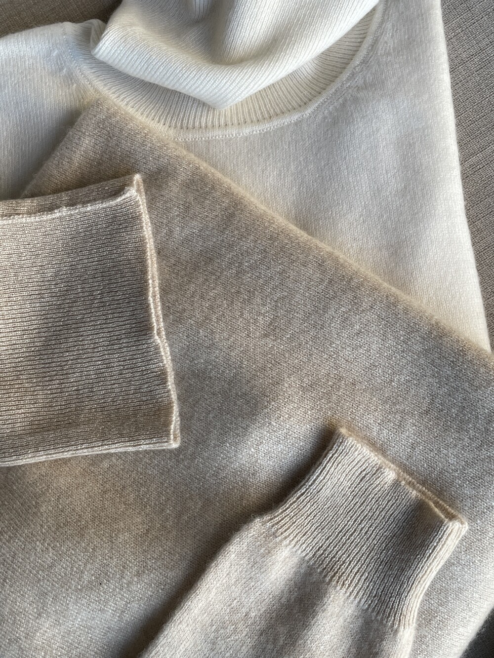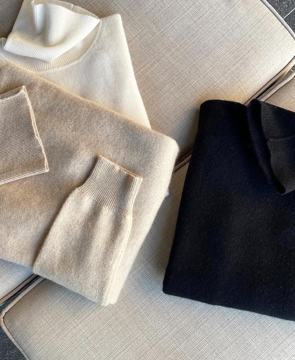 넥라인, 소맷단, 햄라인의 깔끔한 시보리 디자인으로 군더더기 없는 베이직 기본 아이템으로 몽골 퓨어 캐시미어 100% 클래식 터틀넥 니트 입니다.