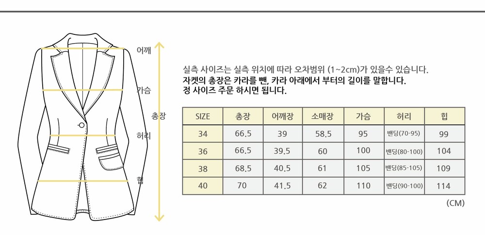 사이즈: 34(44), 36(55), 38(66), 40(77); 정 사이즈 입니다. (상세 사이즈 하단 참고)