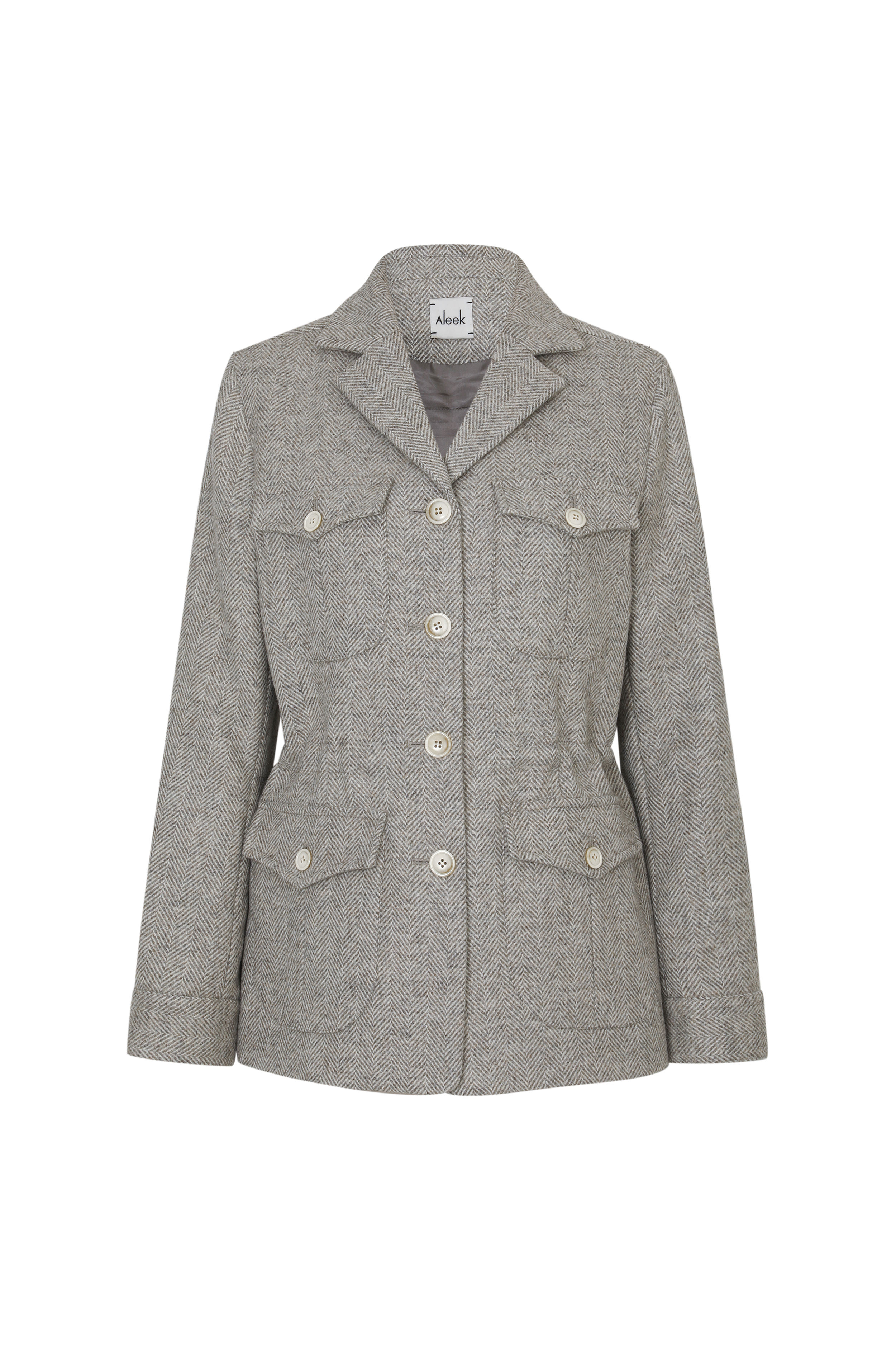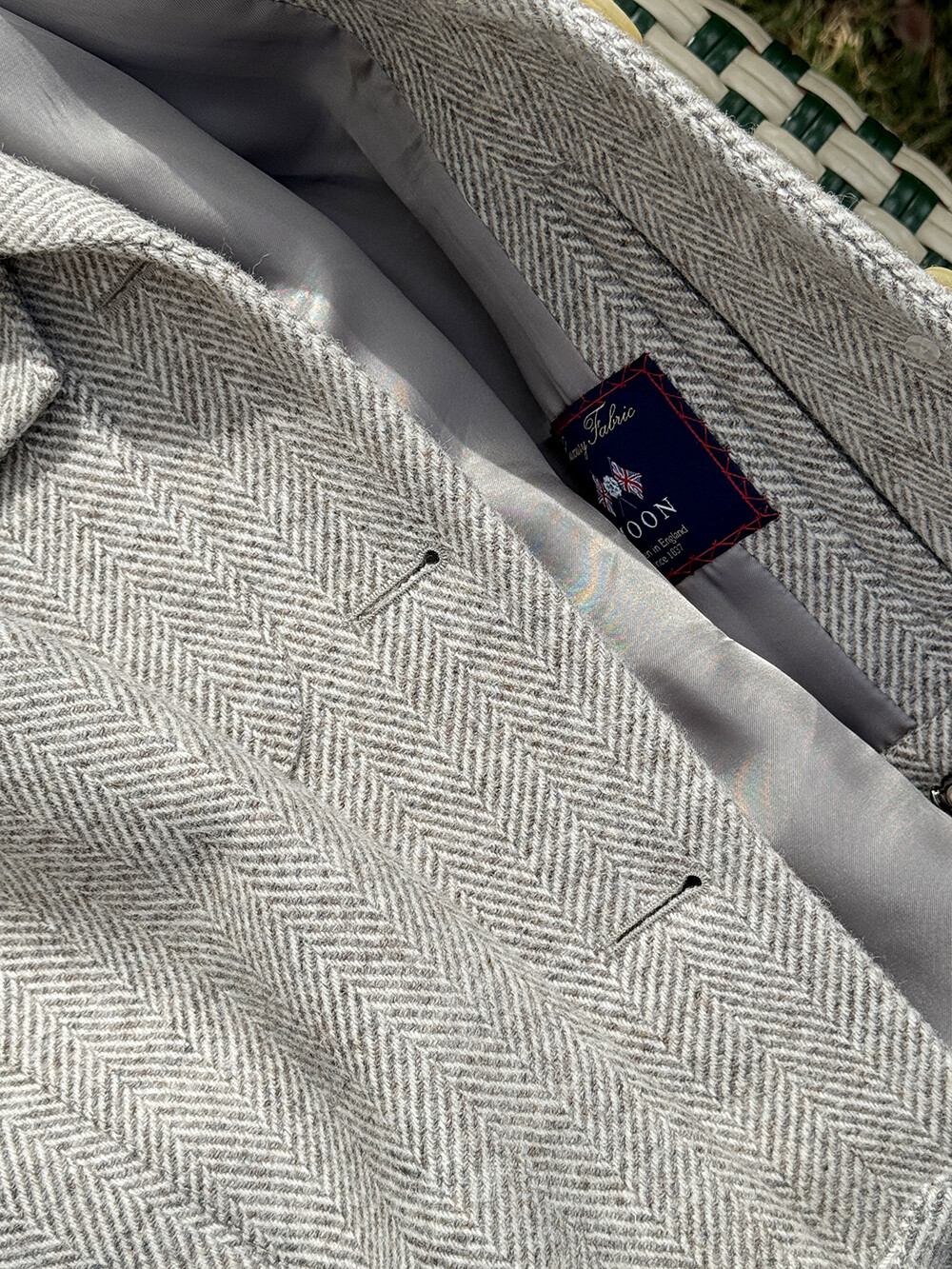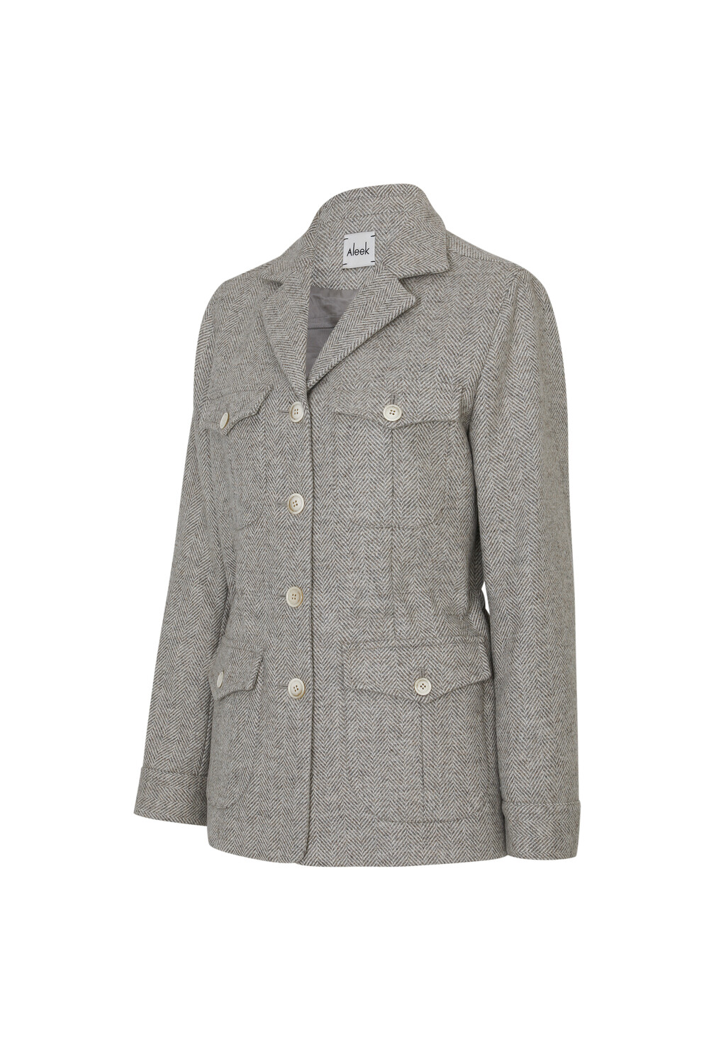 Aleek Moontweed Pure Wool Herringbone Gentle Safari JK_Khaki Gray