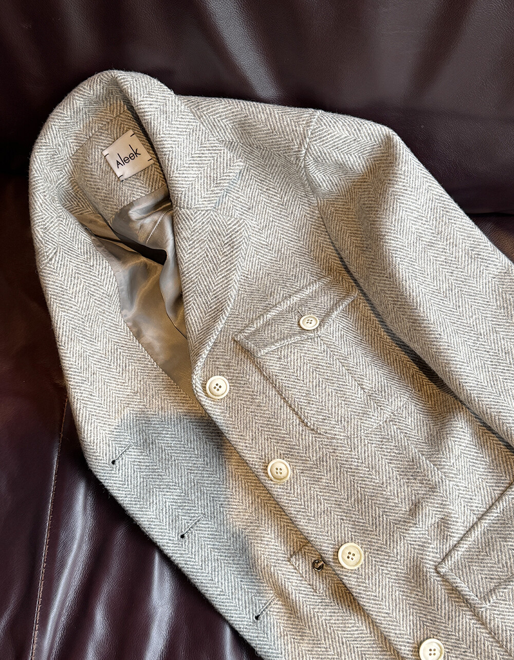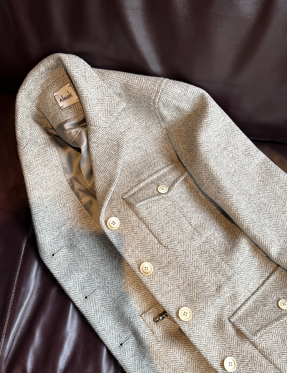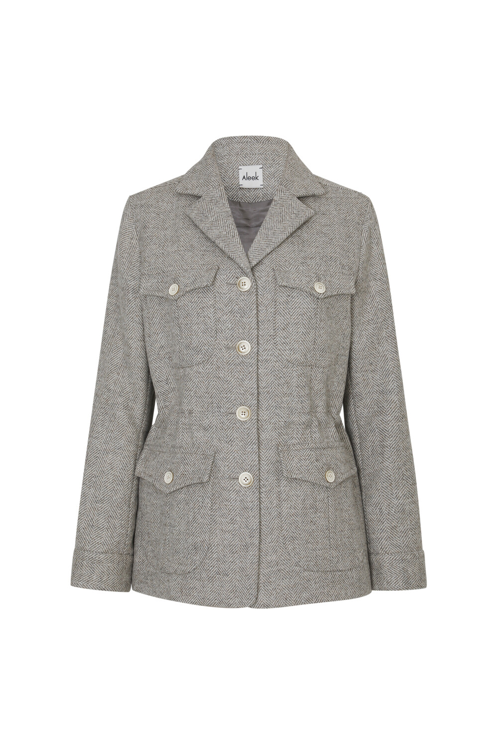 Aleek Moontweed Pure Wool Herringbone Gentle Safari JK_Khaki Gray