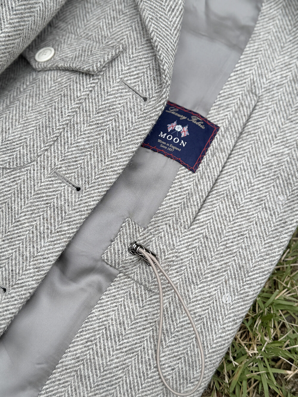울은 자연섬유로서 반복 착용, 세탁, 마모에 있어서도 비교적 견고하며, Moon의 원단은 특히 ‘입을수록 원단의 표정이 살아나는’ 특성이 있습니다. 문트위드 요크셔 트위드 공장의 설명에 “Colour combinations of different tints… threads of different colours are intertwined”라는 언급이 있습니다. 즉, 단일 색 실만으로 짠 것이 아니라 여러 색을 혼합해 방적·염색함으로써, 세월의 흐름이나 사용감이 더해져도 ‘멋스러움’이 증가하는 원단으로 작용합니다.